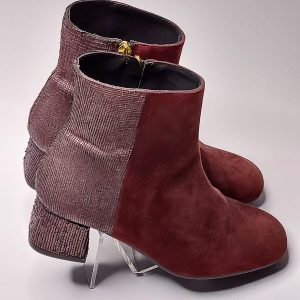 Botín de ante tacón cuadrado Burdeos PEPE CASTELL
