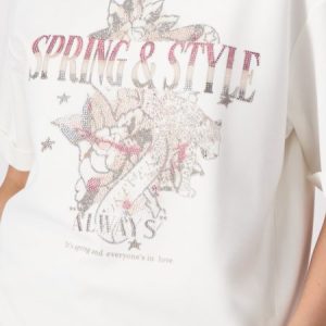 Sudadera con letras decorativas y cuello alzado champagne MONARI