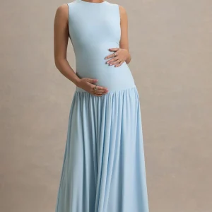 Outline | Vestido largo Premamá Azul cielo con Falda Drapeada