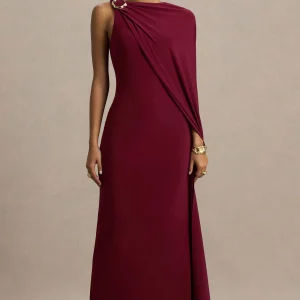Federica | Mini Vestido de Jacquard Burdeos y Dorado con Escote Palabra de Honor y Silueta en Línea A