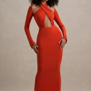 Gita | Vestido largo naranja cut out con mangas largas
