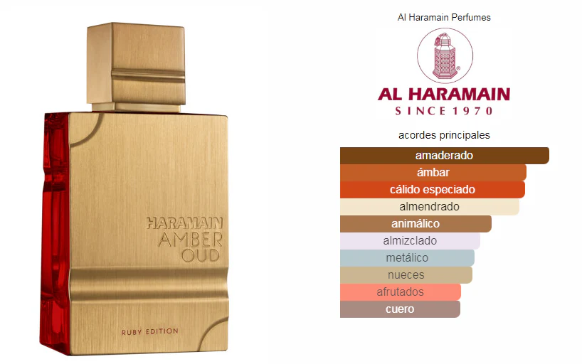 Amber Oud Ruby Edition de Al Haramain Perfumes es una fragancia de la familia olfativa para Hombres y Mujeres. Esta fragrancia es nueva. Amber Oud Ruby Edition se lanzó en 2022. Las Notas de Salida son azafrán y almendra amarga; las Notas de Corazón son cedro y jazmín egipcio; las Notas de Fondo son ámbar gris, notas amaderadas y almizcle. DUPE BACCARAT 540 ELIXIR