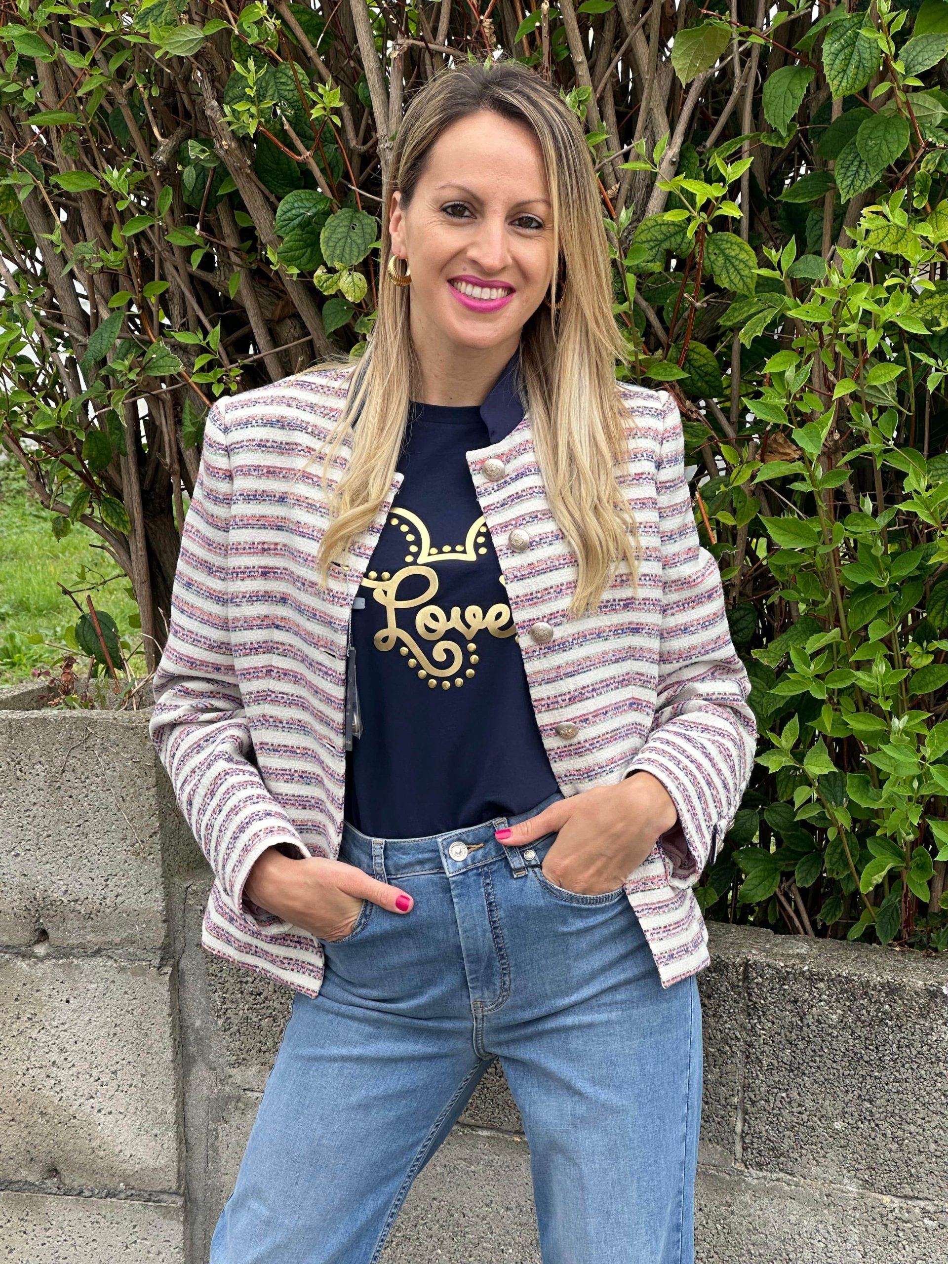 Descubre la americana entallada con estampado multicolor de Tinta & Bariloche, una pieza que combina estilo y sofisticación. Su diseño incluye un elegante cuello mao en contraste azul marino y un cierre frontal con botones metálicos con relieve. La americana cuenta con manga larga y un falso cierre abotonado, así como falsos bolsillos de solapa que añaden un toque de distinción. El bajo recto sin aberturas y el forro interior a contraste completan esta prenda, haciéndola perfecta para cualquier ocasión en la que desees destacar con elegancia.