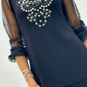La modelo mide 1,70 m y usa talla 36 en EU.