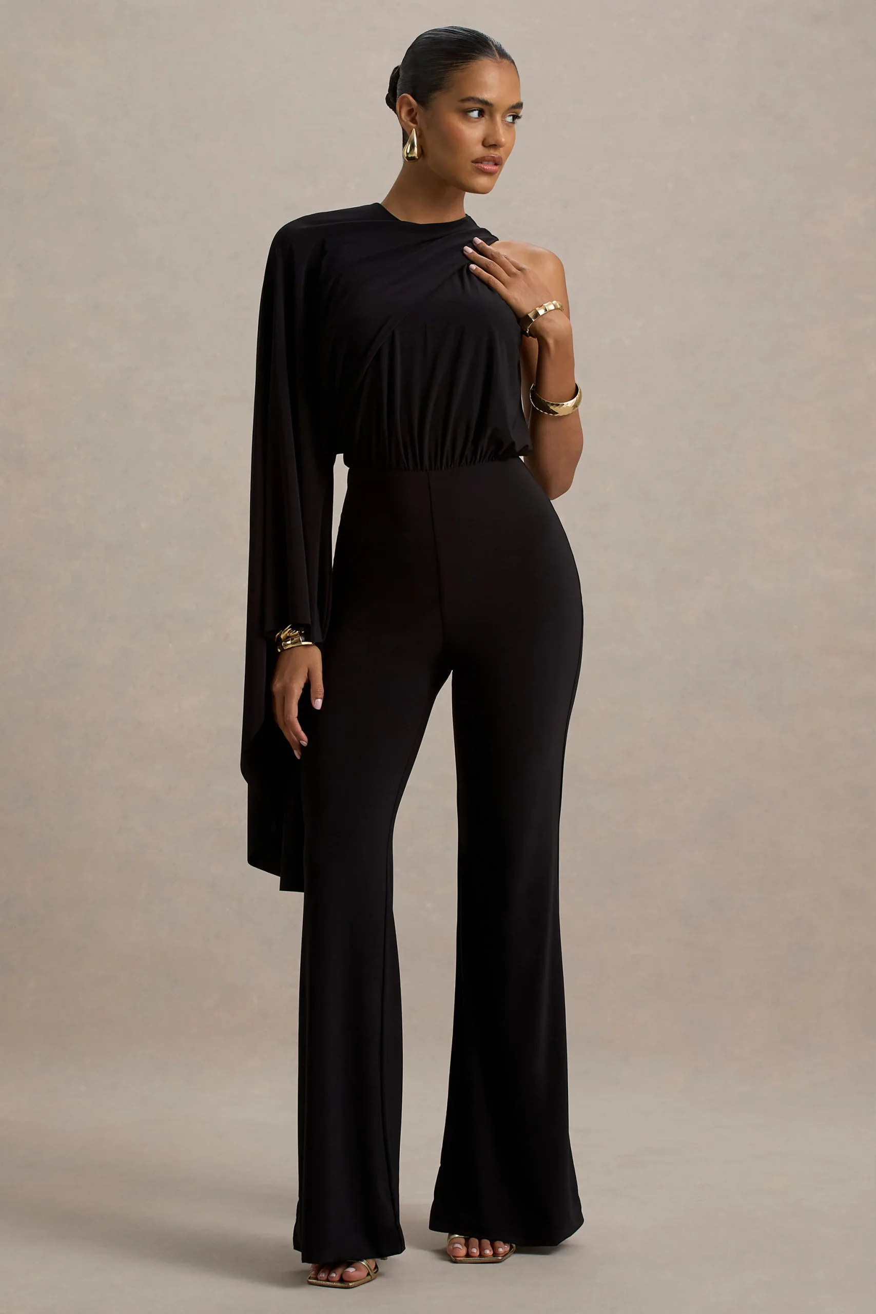 Una prenda básica con un toque audaz, Asra está destinada a convertirse en tu elección para ocasiones especiales. Confeccionado en nuestro premium jersey negro, esta pieza está diseñada para captar la atención gracias a su llamativa silueta. La manga tipo capa cae de forma impecable en unos pantalones de pierna acampanada, creando un enterizo único.