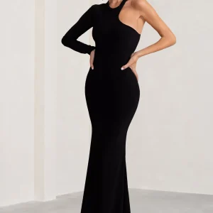 Blusón confeccionado en tejido fluido color negro de Frank Lyman. Manga larga y escote redondo con cremallera. Bajo asimétrico y aberturas laterales.