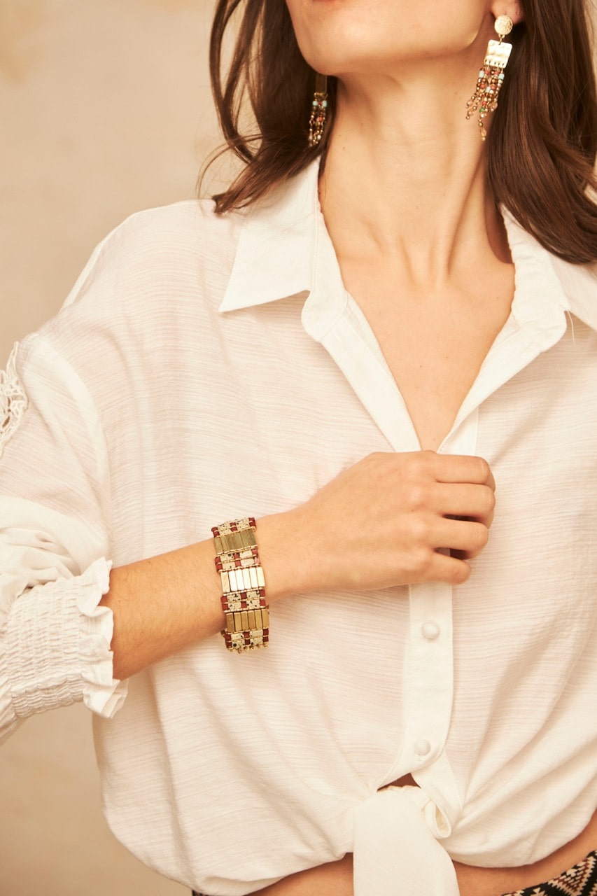 Brazalete de abalorios elástico de Nekane con aplicaciones metálicas.