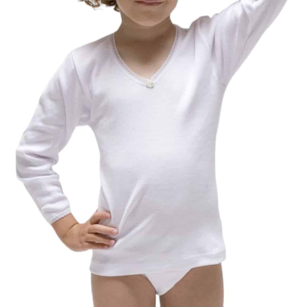 Su interior afelpado crea una capa térmica que ayuda a mantener el calor corporal, ideal para climas fríos o épocas invernales. Esta camiseta interior infantil se ajusta perfectamente al cuerpo de la niña sin deformarse, asegurando una gran libertad de movimiento.
