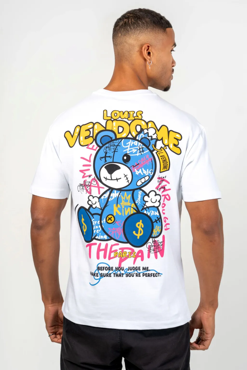 La camiseta Graffiti Bear de Louis Vendôme Paris es mucho más que una simple prenda de vestir; Es una declaración de estilo, una obra de arte que fusiona la cultura streetwear con un diseño atrevido. Esta camiseta es la encarnación perfecta del espíritu urbano moderno, diseñada para quienes quieren destacar con elegancia y originalidad.