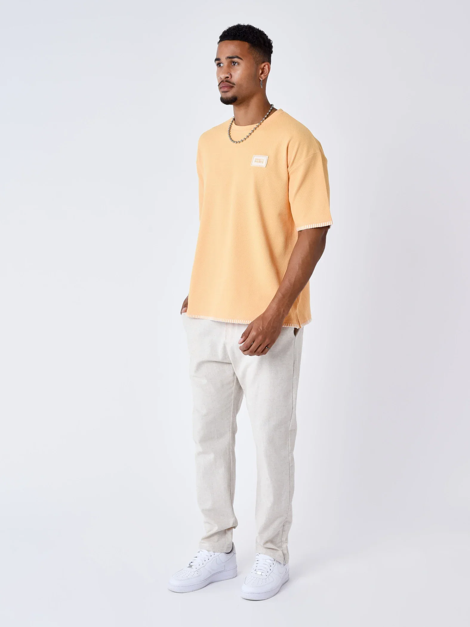 - Detalles de bordado contrastante en el borde de la manga y en la parte inferior del cuerpo