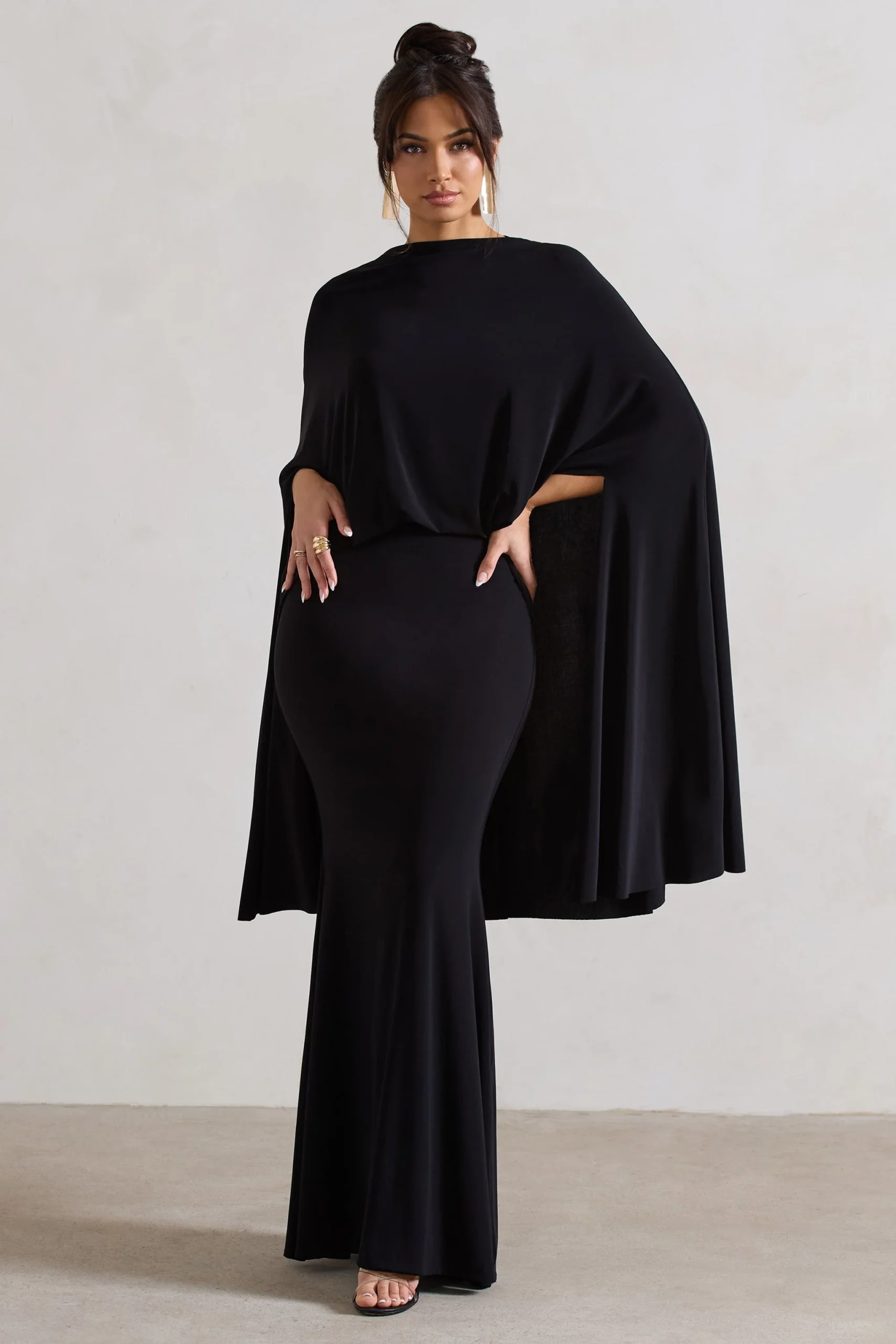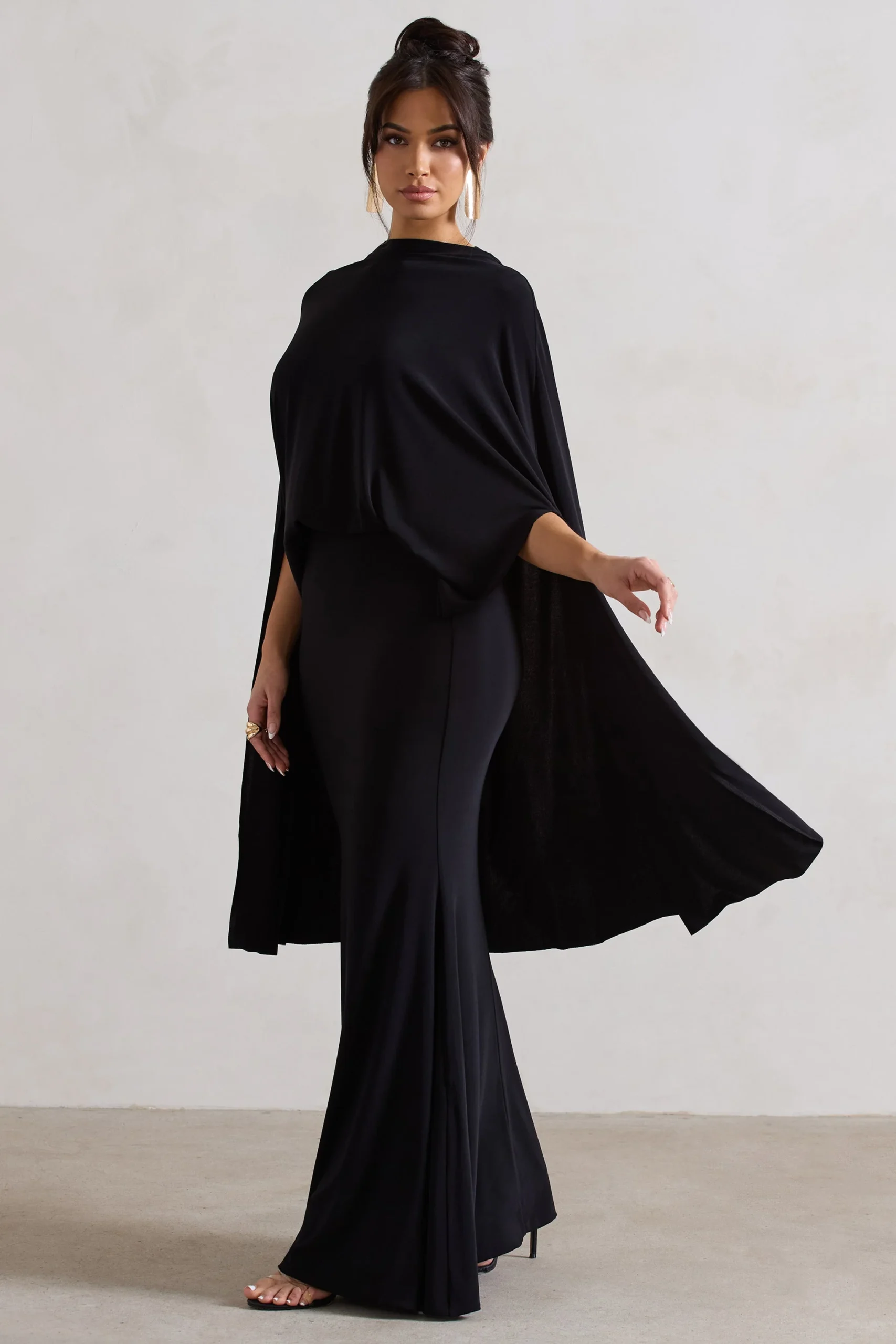La temporada de bodas requiere una elegante prenda como Charmaine. Confeccionado en un clásico tono negro de nuestro jersey elástico de firma, este vestido largo se define por una original capa y un escote alto. Adornado con unos zapatos de tacón brillantes como Oh Please, este vestido negro es perfecto para cualquier evento de etiqueta.
