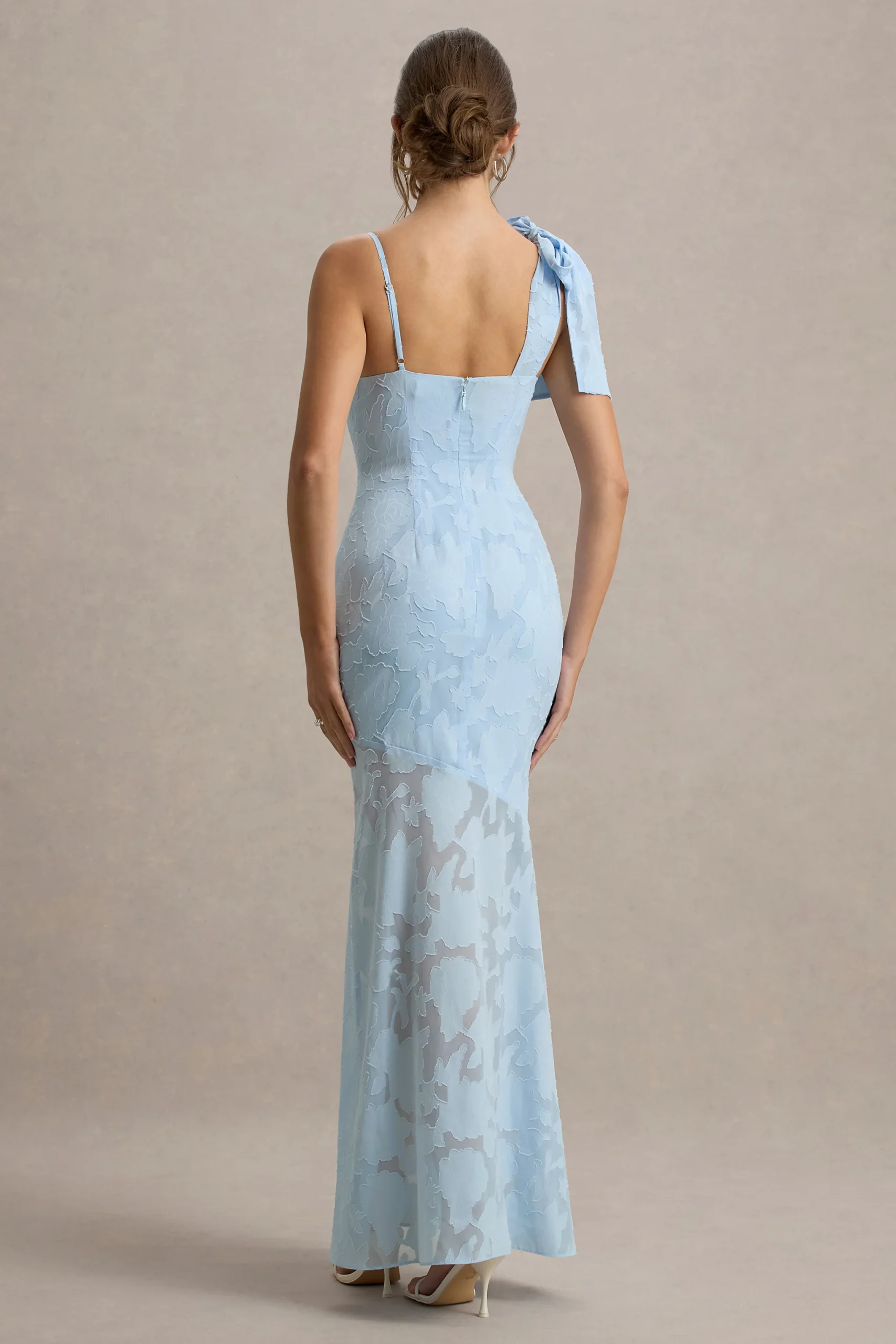 Delicado y femenino, Chyna es un vestido imprescindible en tu rotación de verano. Confeccionado en nuestro exclusivo tejido floral burn out en un suave tono azul claro, este vestido es la opción perfecta para un look elegante sin esfuerzo. El escote asimétrico añade un toque contemporáneo, mientras que el detalle de lazo en la manga aporta un aire romántico.