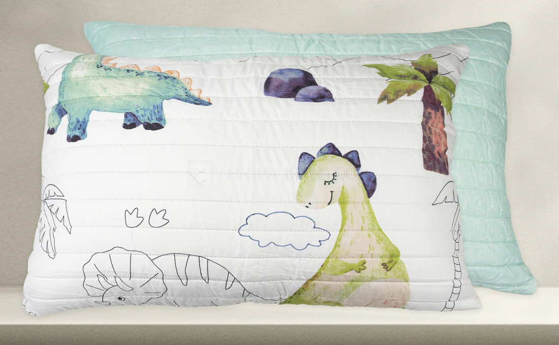Preciosa boutí infantil modelo SPOT Junior 606 con un diseño de dinosaurios de colores con el reverso liso. Ideal para los más pequeños de la casa. La boutí es reversible, con lo que podra alargar su uso.