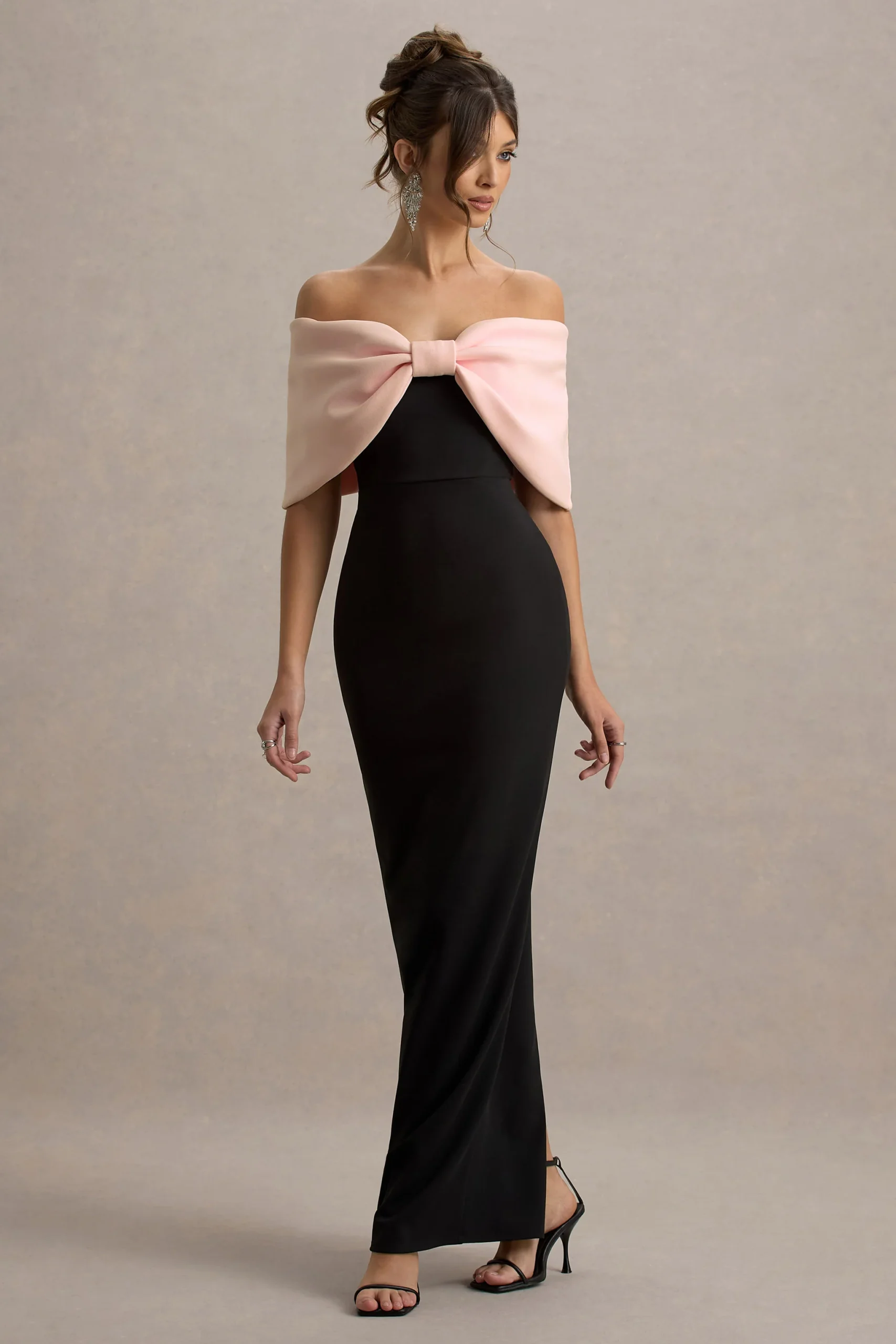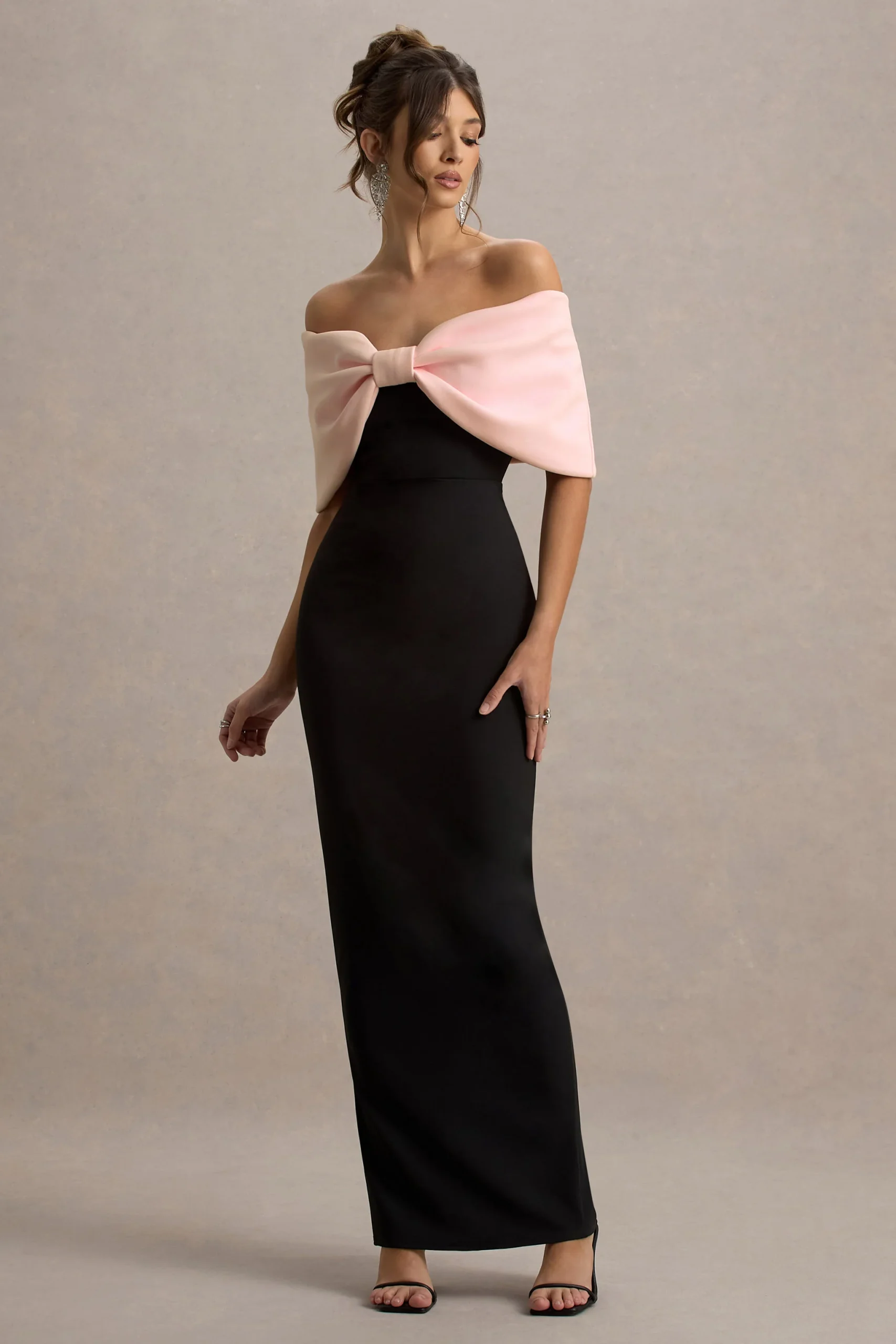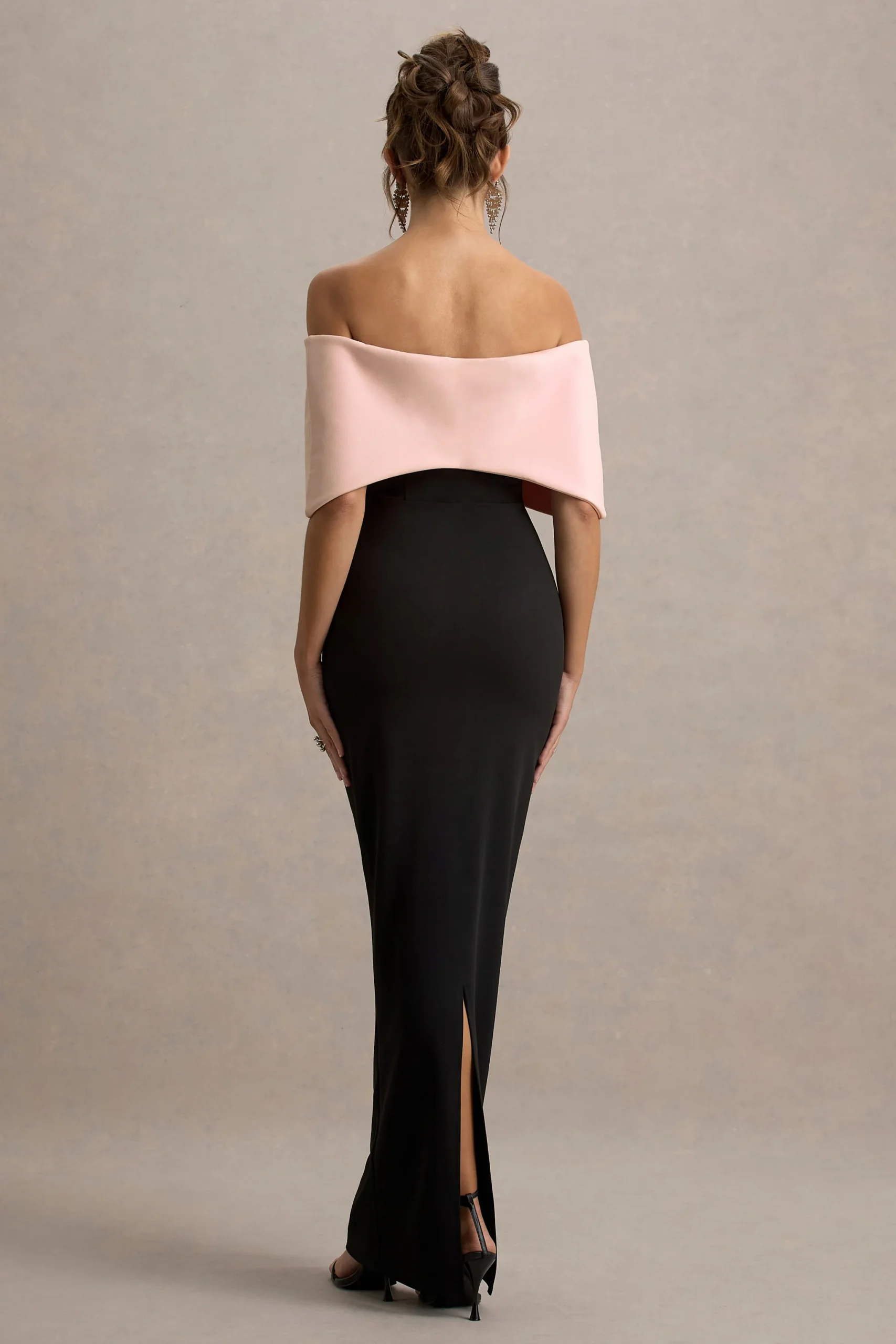 Cornelia es el centro de todas las miradas, llegando en un elegante tono rosa y negro de nuestro exclusivo tejido scuba crepe. Este vestido maxi te hará sentir como un millón de dólares con su impresionante escote bardot en forma de lazo. Roba todas las miradas combinando el Cornelia con nuestro opulento collar Opalia.