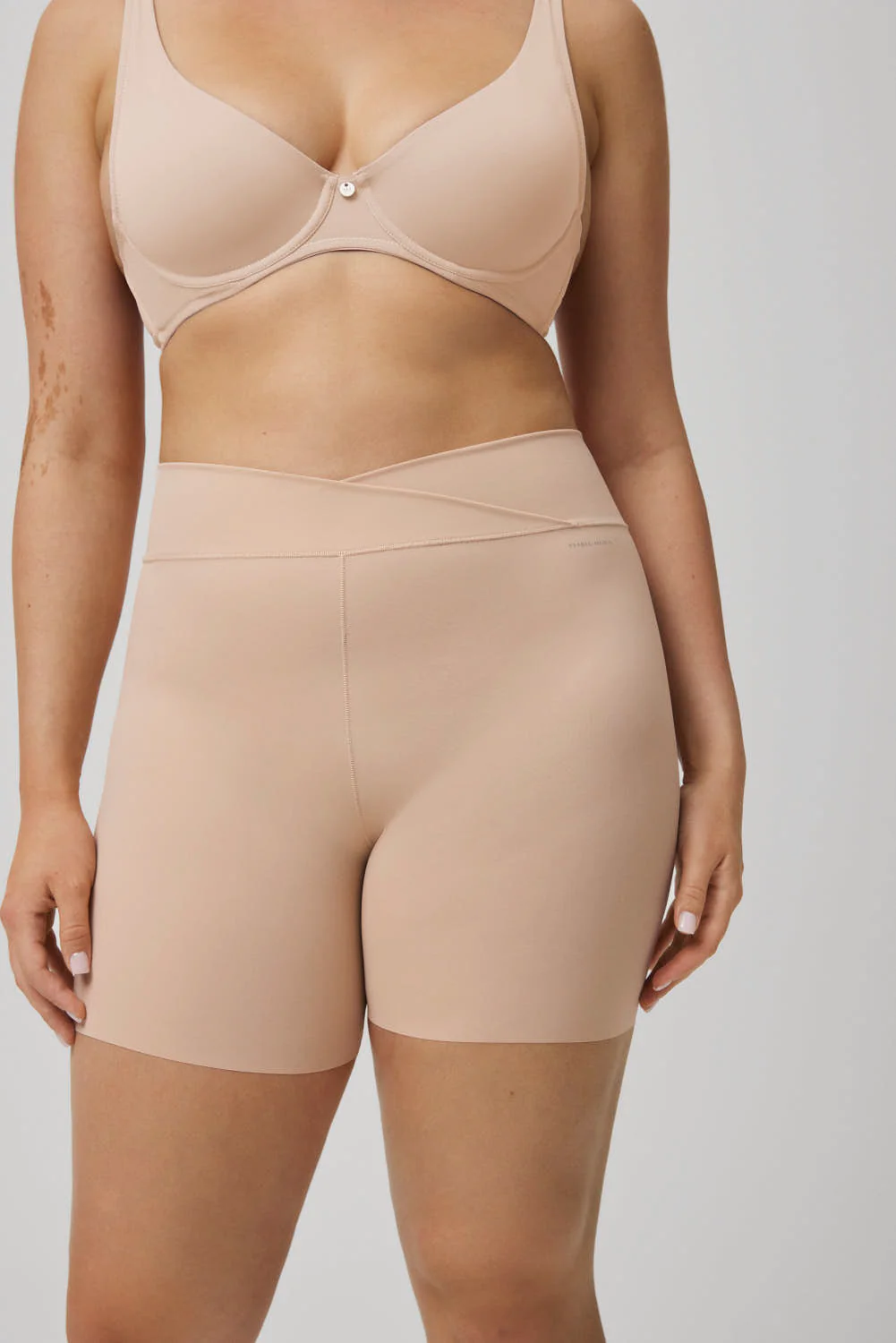 Culotte antirroce de microfibra y perneras con corte láser. Cinturilla cruzada que se acopla a cualquier silueta. La ausencia de ribetes y costuras lo convierte en invisible bajo prendas ajustadas. El corte láser ofrece una terminación completamente plana que aporta gran adaptabilidad. Tejido elástico muy suave.