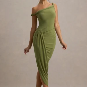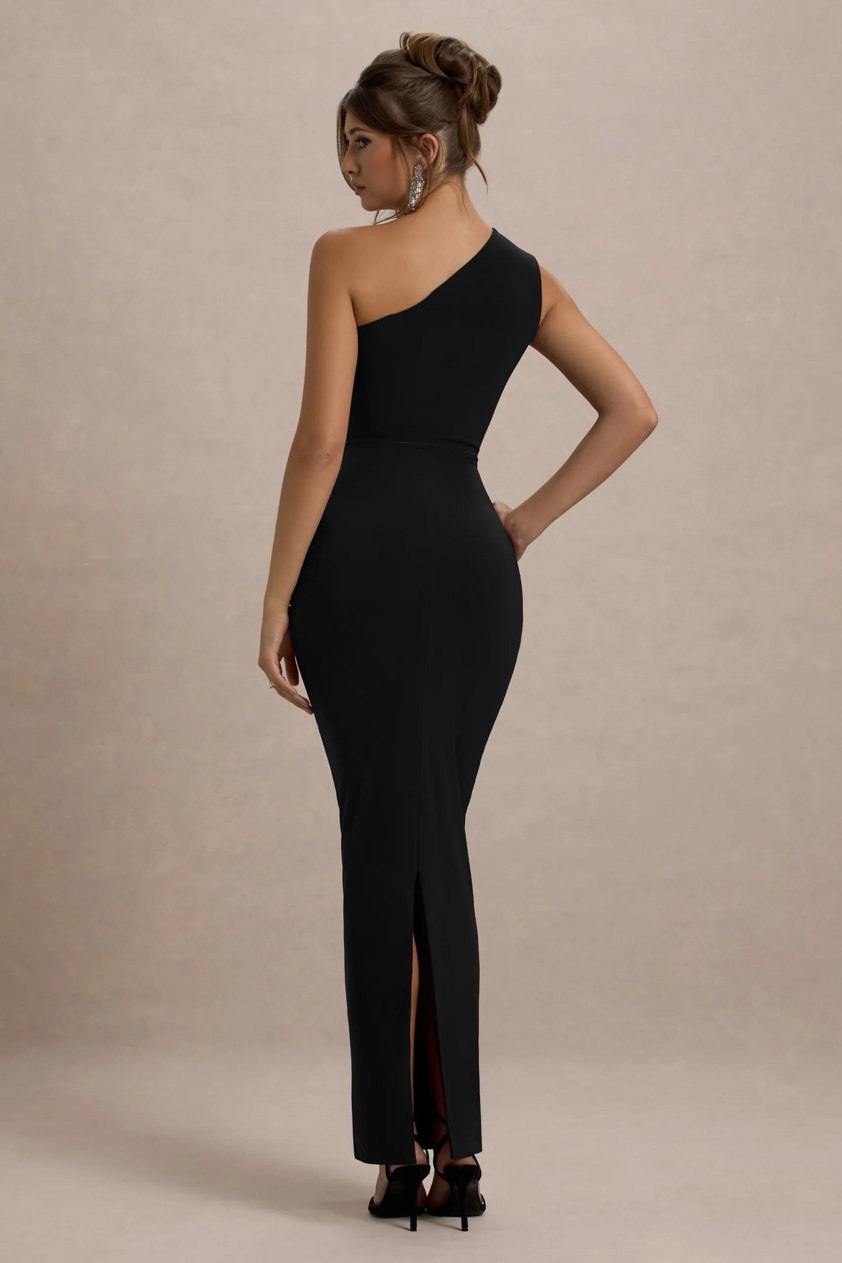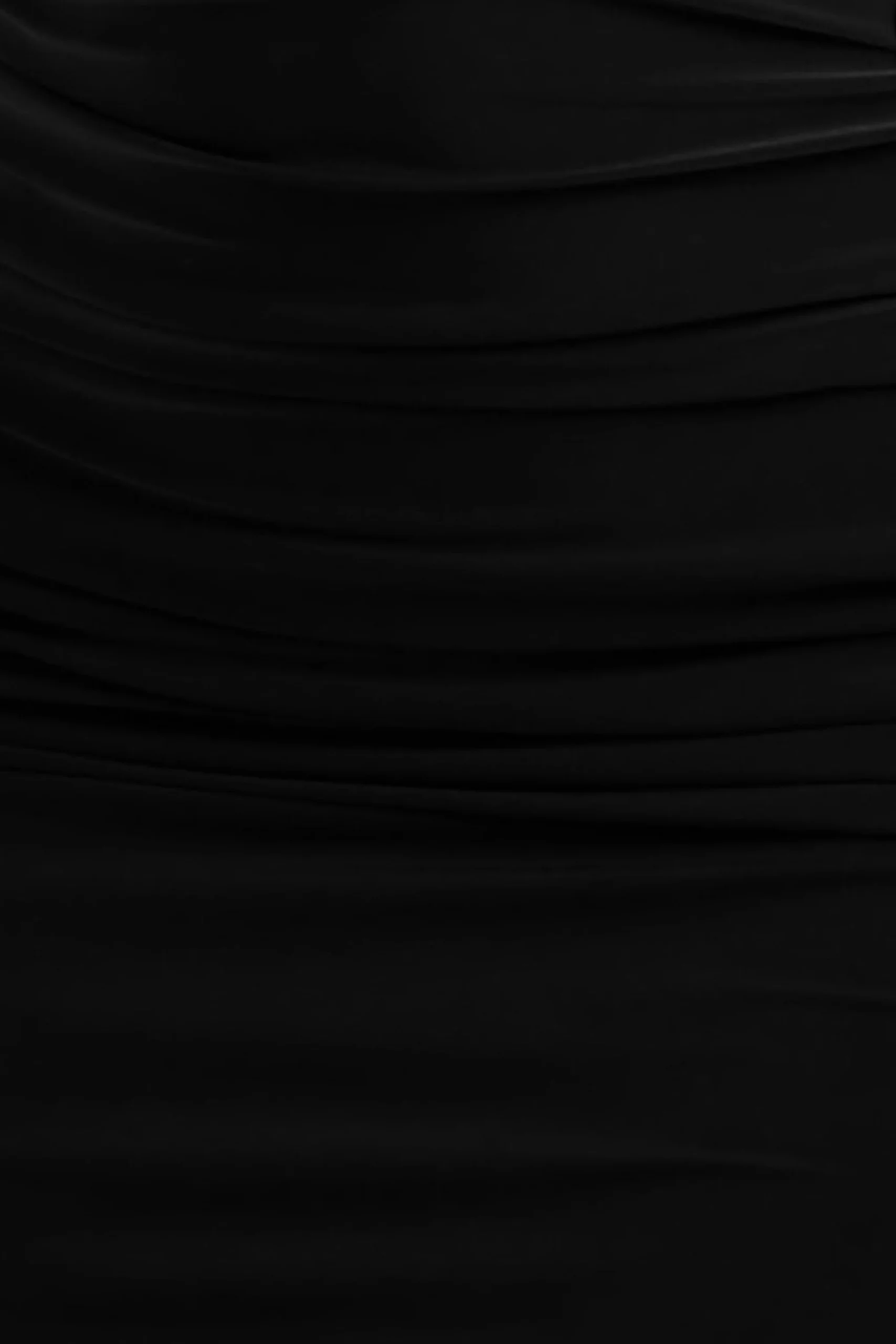 Un básico esencial en tu guardarropa, Dalarie te cautivará desde todos los ángulos. Diseñado en nuestro jersey de doble capa, conocido por sus capacidades de escultura, este vestido maxi negro se realza aún más con fruncidos en todo el cuerpo. Complementa su escote asimétrico con un sencillo moño elegante y unos pendientes brillantes para tu próxima cita.