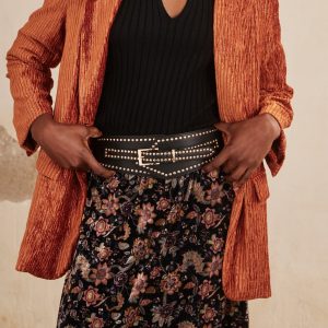 La modelo mide 1.70m y lleva la talla 36 en EU.