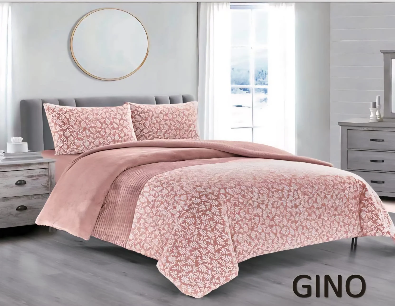 Cuenta con relleno de 600g/m2 y fundas de cojín a juego. Disponible en 3 colores: beige, gris y rosa.