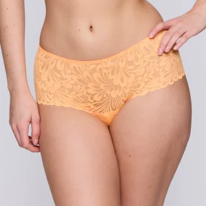Hotpants de encaje años setenta y una tela de look satinado. El seductor encaje de pestañas en las nalgas completa el look. La braga desvela una parte sensual de las nalgas y no marca. Gracias al encaje de las piernas, la braga no se marca por debajo de tus prendas.
