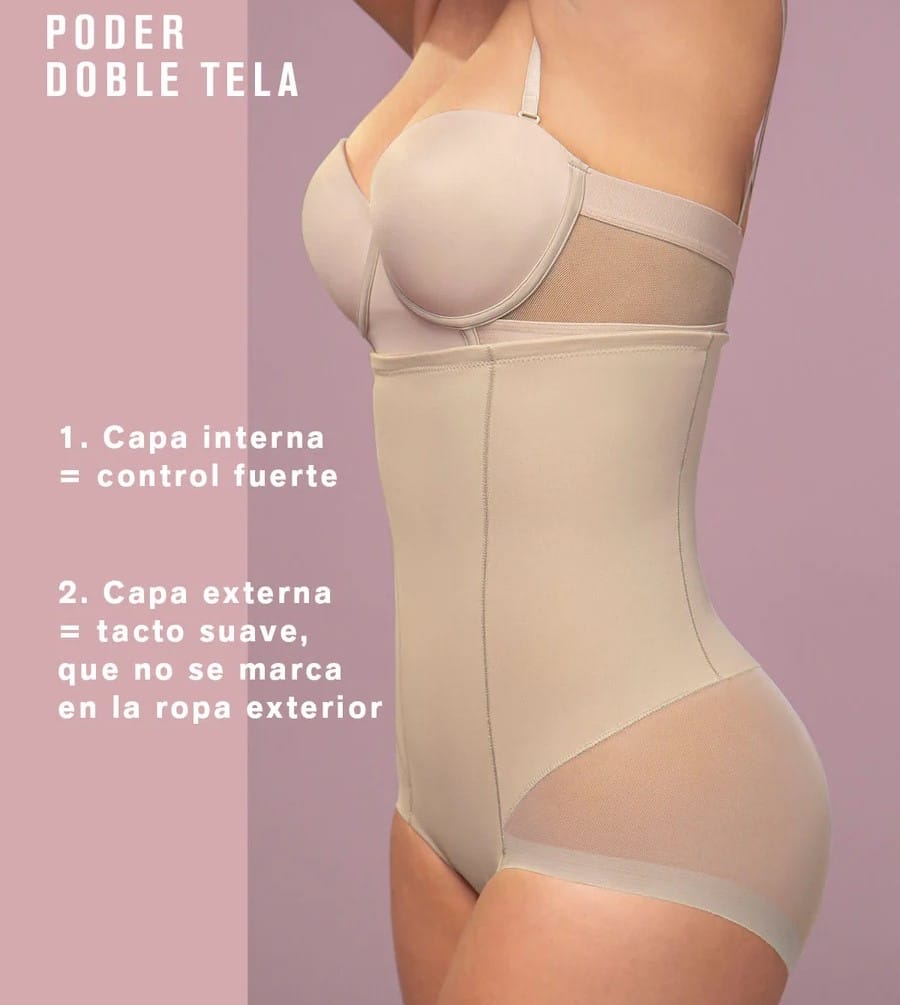 Este modelo de braga faja es todo lo que necesitas para moldear tu cuerpo: tiene control suave en el abdomen alto y control fuerte en el abdomen medio y bajo. Fabricada con doble capa del material de compresión PowerSlim + tela lisa que te brindan un mayor ajuste y suavidad al tacto. Cuenta con unas costuras frontales y en la espalda para un efecto reloj de arena, su elástico antideslizante en la parte superior evita que la prenda se enrolle o se baje y cuenta con ojales en la espalda para abrochar los tirantes del sujetador.