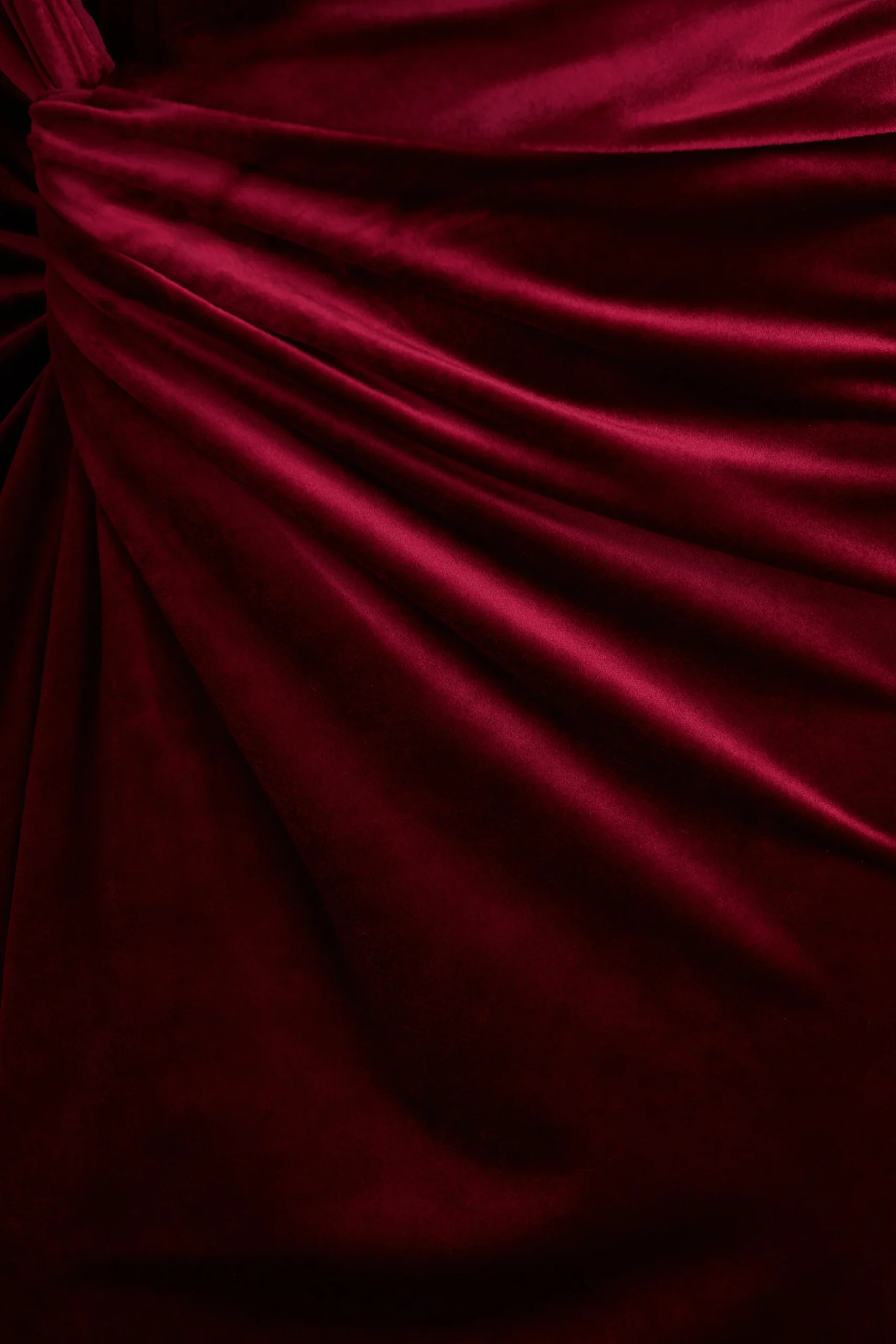 Fay | Vestido Maxi Anudado Estilo Corsé en Terciopelo Color Baya