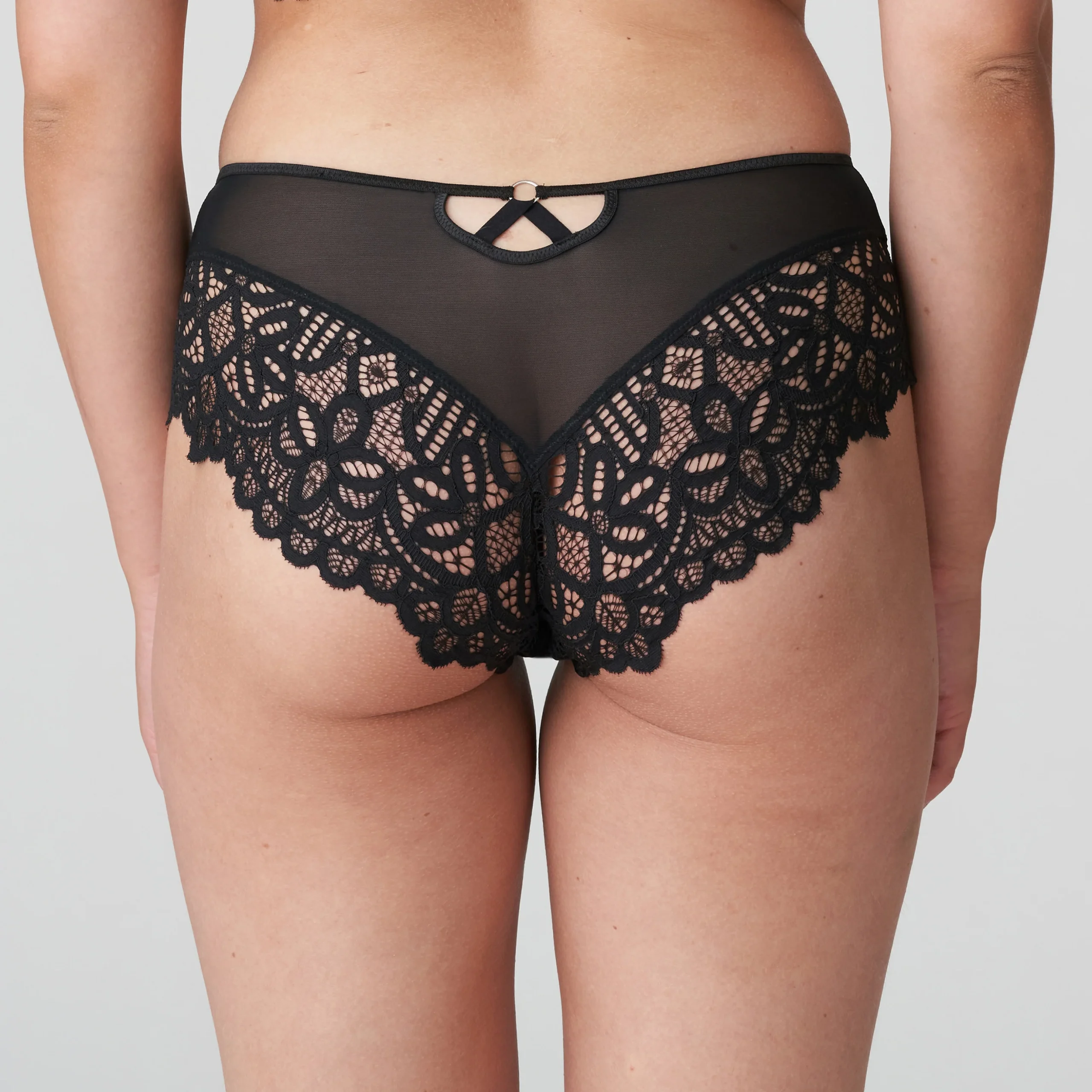 Hotpants sensual con un seductor ribete de encaje en el contorno de las piernas Un look muy sugerente gracias al encaje en las nalgas.