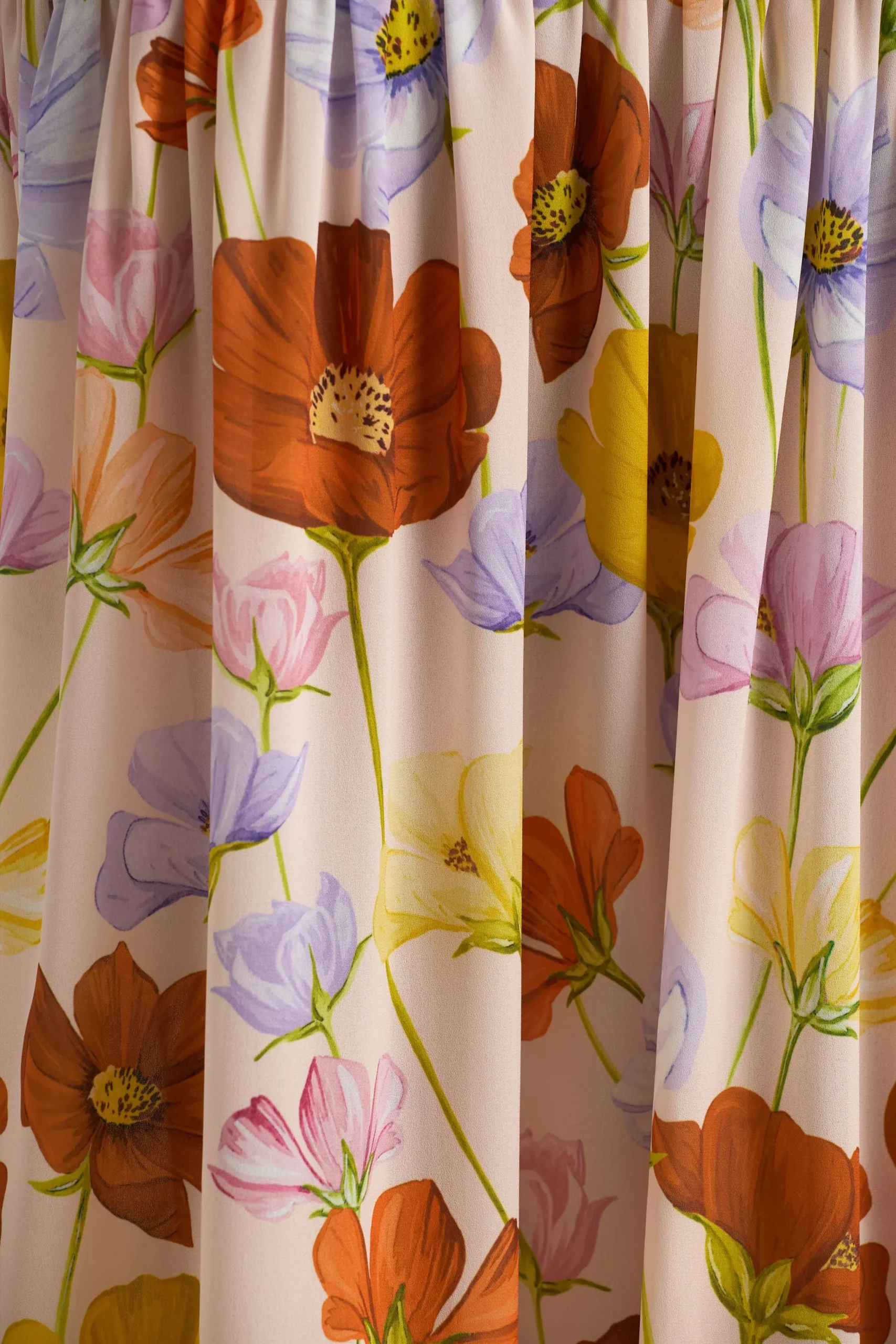 Diseñado en un llamativo estampado floral brillante sobre nuestro tejido stretch premium, este vestido maxi es la combinación perfecta entre elegancia y dramatismo. Su escote pronunciado aporta un toque atrevido a una silueta sofisticada, equilibrada con mangas abullonadas que hacen una declaración de estilo. Presenta una cintura caída que realza la figura desde todos los ángulos y una falda plisada que añade el movimiento justo. Para eventos elegantes esta temporada.