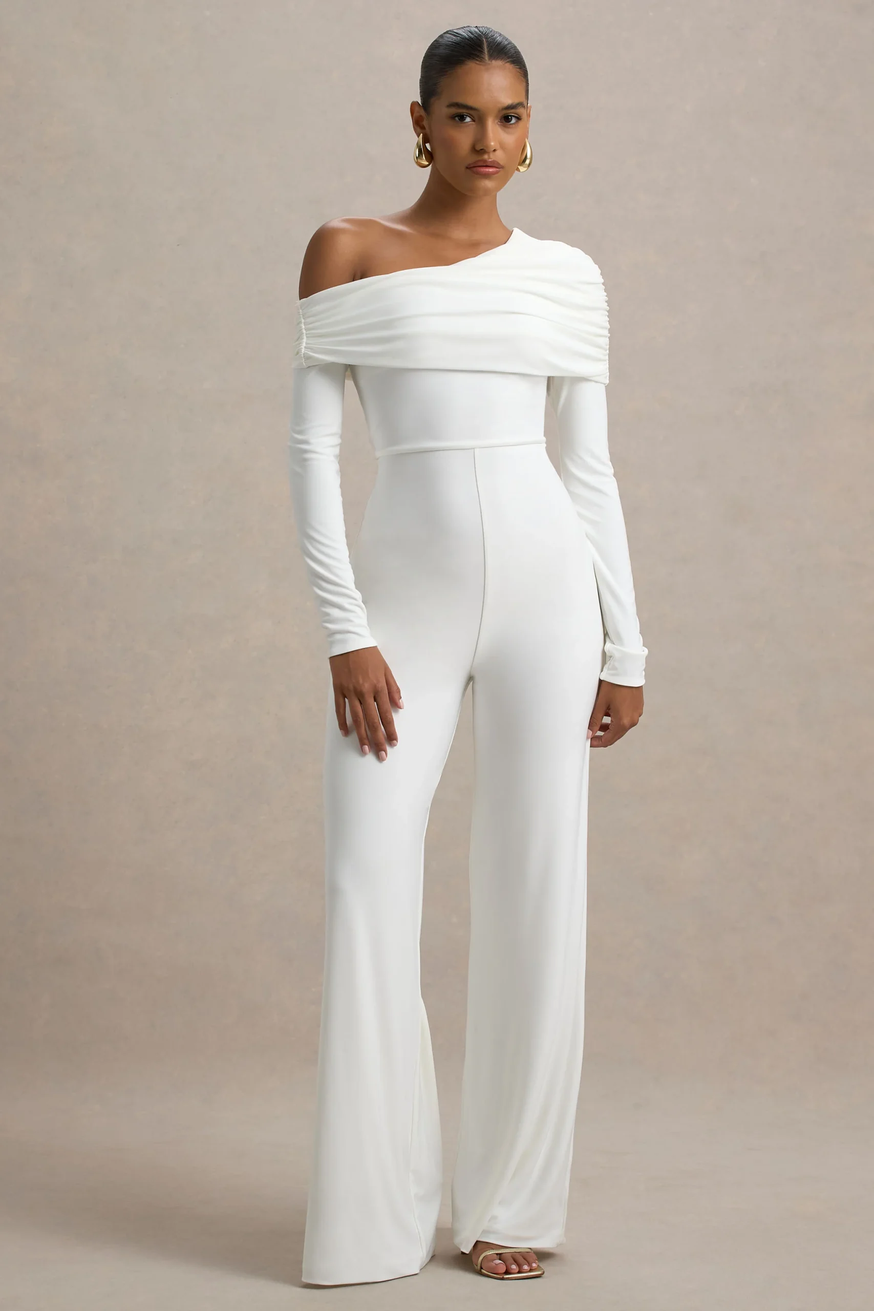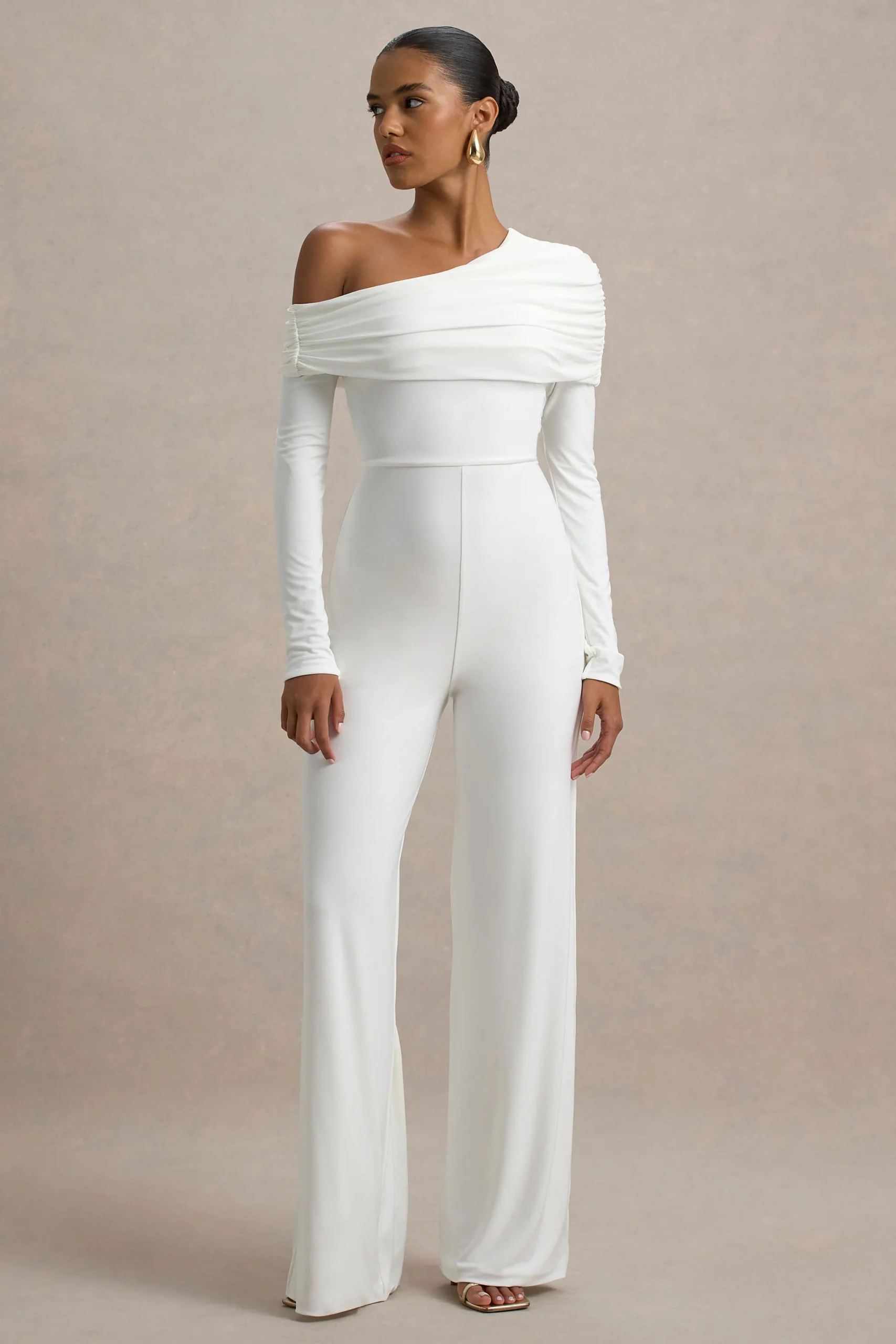 Gracious | Mono Blanco con Escote Asimétrico y mangas largas