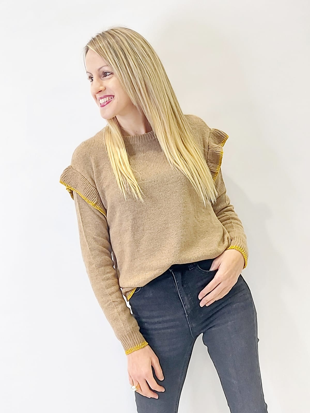 Jersey de cuello redondo de Anonyme con manga larga con volantes.