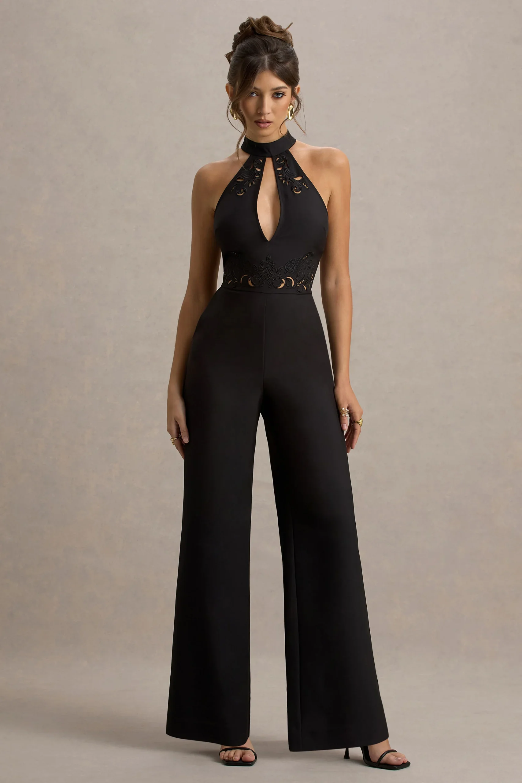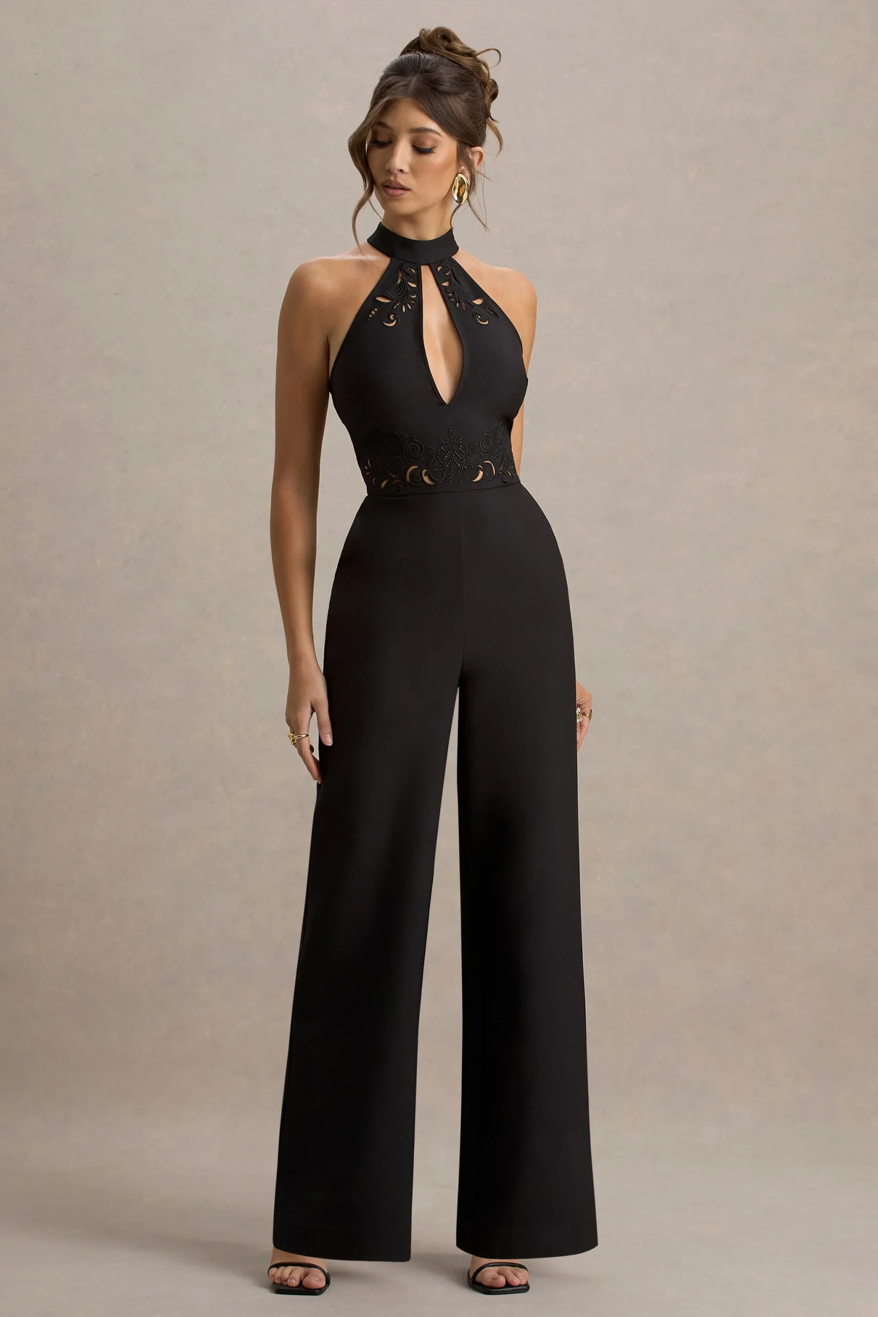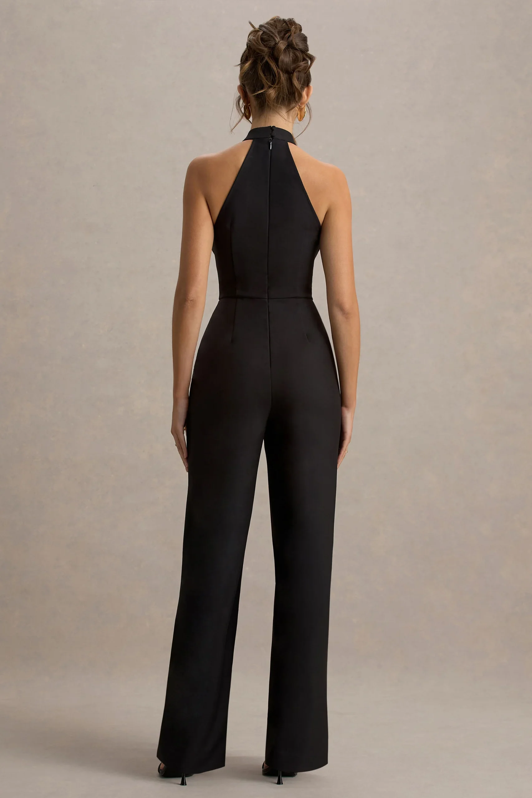Para un look elegante y sofisticado, Kami es el mono perfecto para ti. Confeccionado en un tono negro profundo de nuestro crepé premium con elastano, este mono ofrece un acabado favorecedor que realza la figura, haciéndote sentir lo mejor de ti misma durante toda la noche. El escote halter se realza con un detalle de corte en el pecho, añadiendo un toque moderno que contrasta perfectamente con el delicado corsé bordado. Esta es la pieza perfecta para cualquier evento nocturno, combinada con accesorios dorados y tacones elegantes.