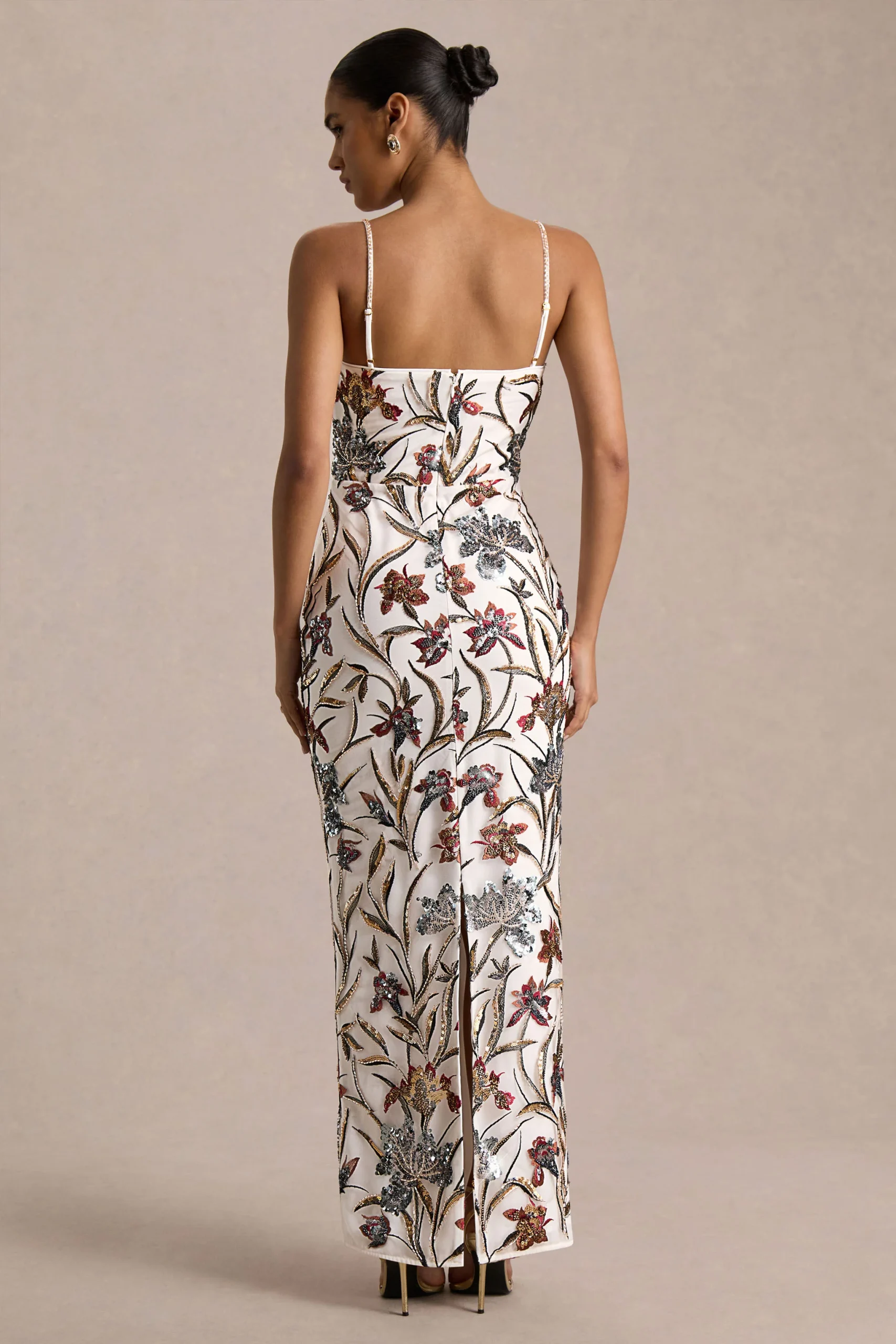 El detalle delicado se encuentra con el glamour atemporal en Kyle. Diseñado en nuestro exclusivo tejido crema con adornos florales, este vestido maxi combina feminidad y sofisticación. El escote cuadrado y las tiras ajustables finos realzan el escote con elegancia, mientras que la abertura trasera central permite libertad de movimiento con un toque seductor. Romántico pero refinado, Kyle es la elección perfecta para ocasiones que exigen elegancia con un acabado impactante.