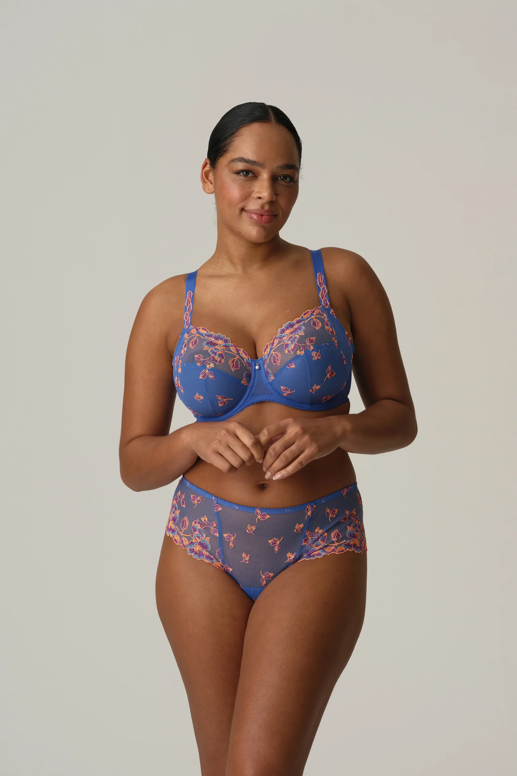 Los diseños y los bordados florales siguen siendo tendencia. En el PrimaDonna Lenca, el bordado floral adquiere mayor profundidad con sorprendentes contrastes, exuberantes detalles y un brillo de lo más chic. Juguetón, sofisticado y muy confortable. Blue Eyes es un azul cielo fresco con detalles en naranja fluorescente y un toque de purpurina. Colores que te alegran el día: un toque de belleza para el armario de otoño.