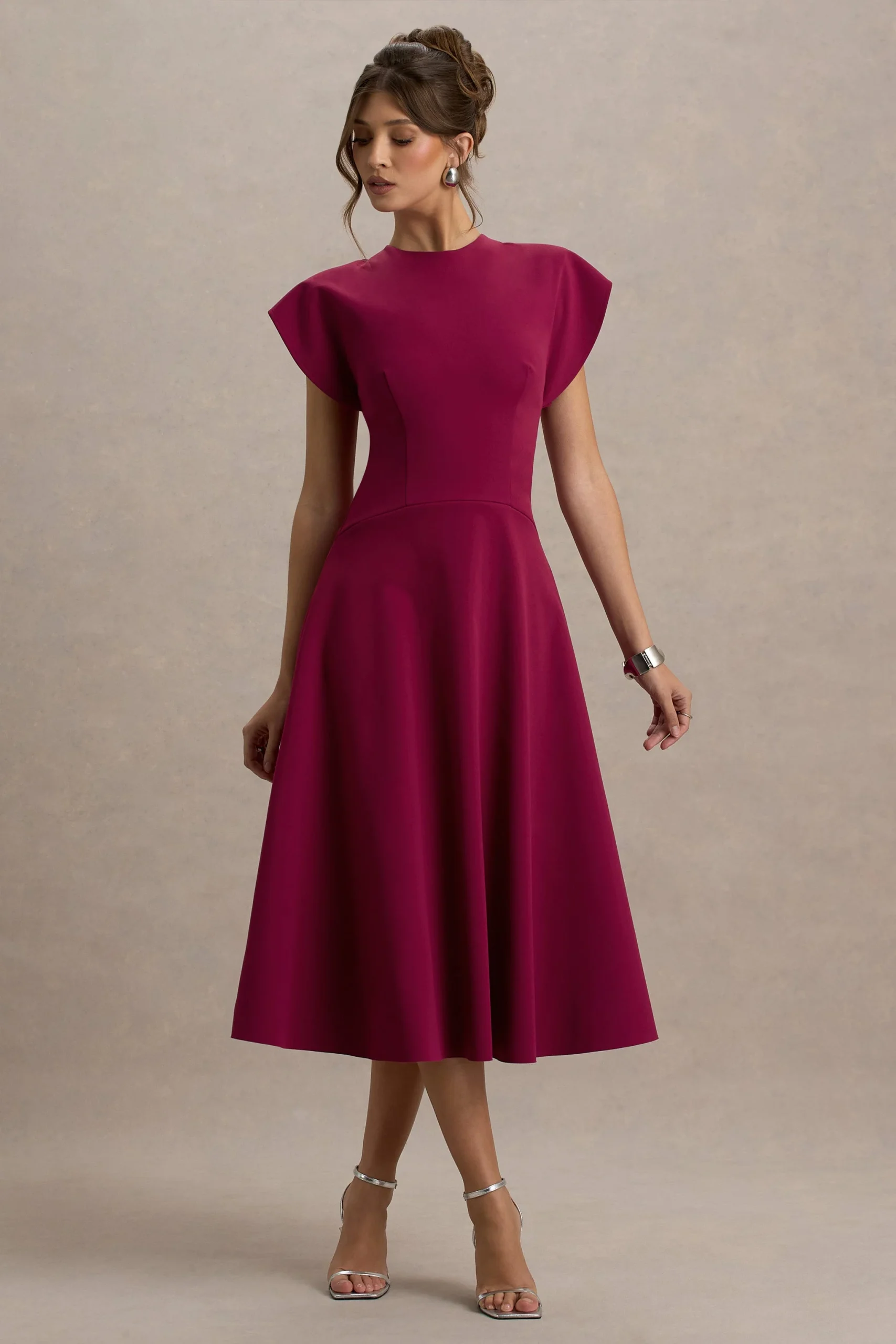 Te presentamos el midi atemporal perfecto, Linda, para añadir a tu colección. Confeccionado en nuestro crepé de buceo premium en un rico tono burdeos, esta prenda se termina con un escote alto y mangas cortas para un look chic y modesto. Combina con pendientes llamativos y irradiarás pura elegancia.