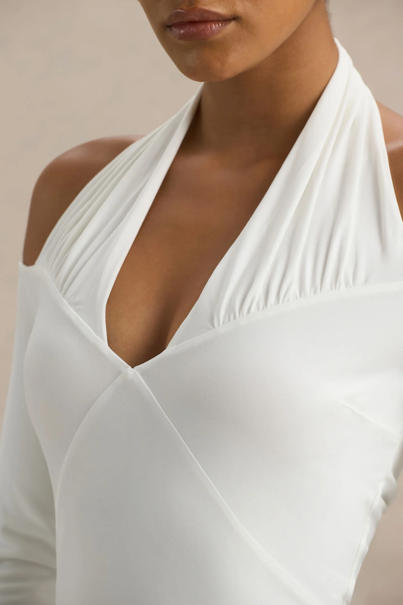 Perfecto para tu próximo evento de gala, este impresionante vestido está confeccionado en tejido premium ITY y malla, e incluye una lujosa abertura alta en la pierna. Diseñado para convertirte en el centro de todas las miradas, combínalo con una coleta alta con volumen para lucir el precioso escote halter. Da un paso al frente y roba todas las miradas con Living High.