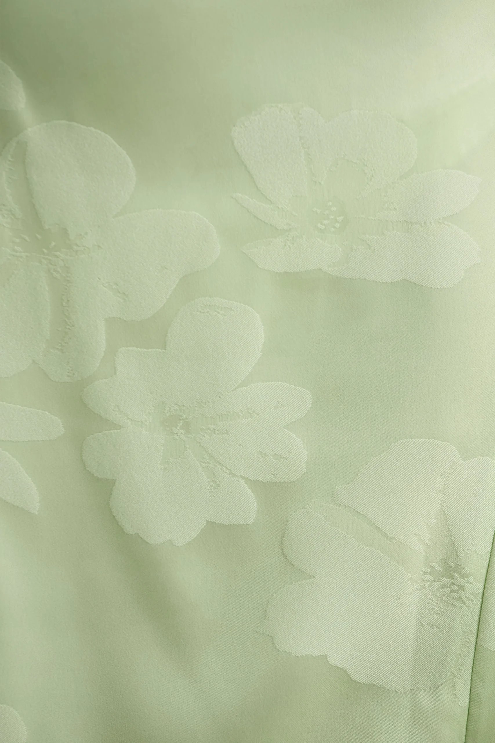 Satén y jacquard de alta calidad en verde claro (100% poliéster)