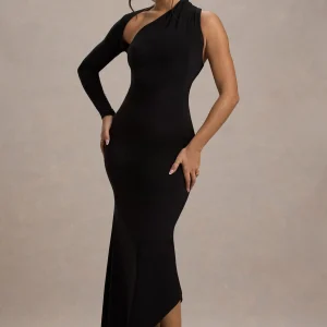 My Pleasure | Vestido Largo Negro con Cuello Cuadrado y Fruncido