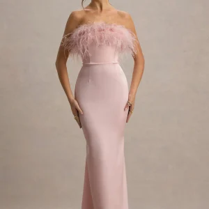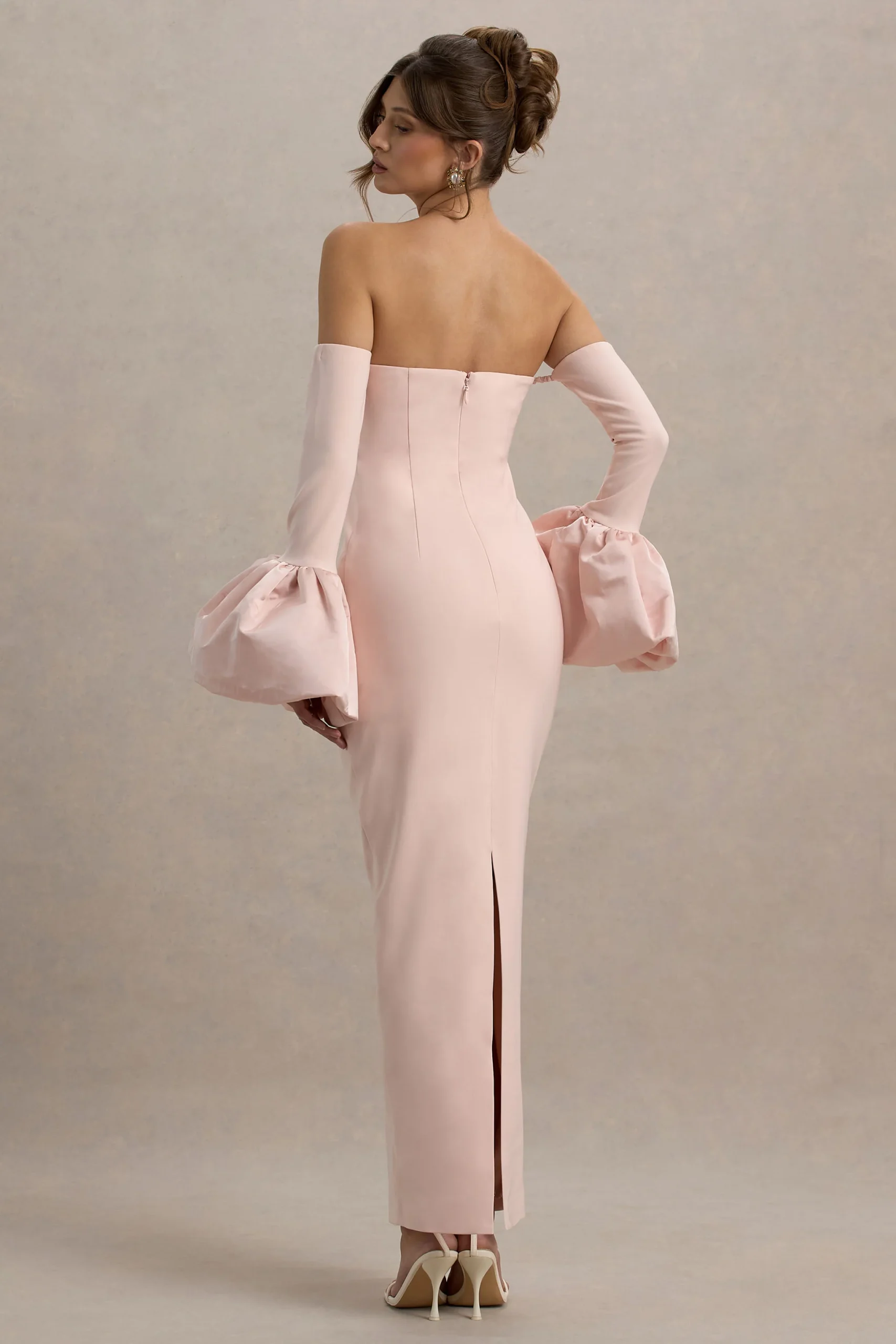 Confeccionado en un suave tono rosa de nuestro crepé scuba premium, este vestido resalta tu figura de manera hermosa, favoreciéndote desde todos los ángulos. Elevado sin esfuerzo con puños de satén de manga abullonada que agregan un toque de drama a esta silueta clásica. El escote bandeau resalta delicadamente tu escote, realzando aún más la feminidad chic de esta prenda. Para cualquier ocasión especial, con Myah cautivarás todas las miradas.