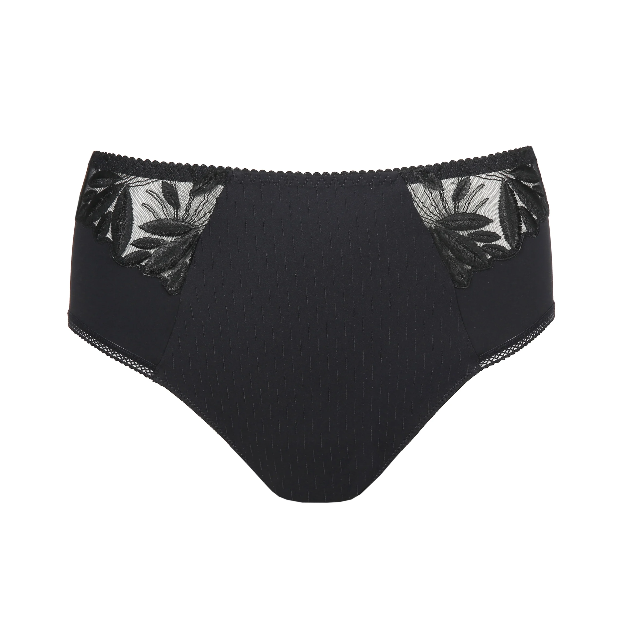 Una lujosa braga alta opaca rematada con un elegante bordado. El bordado en el contorno de las piernas crea un look liviano y una silueta femenina. El talle alto cubre la barriga de un modo elegante. Elástico en el contorno de las piernas