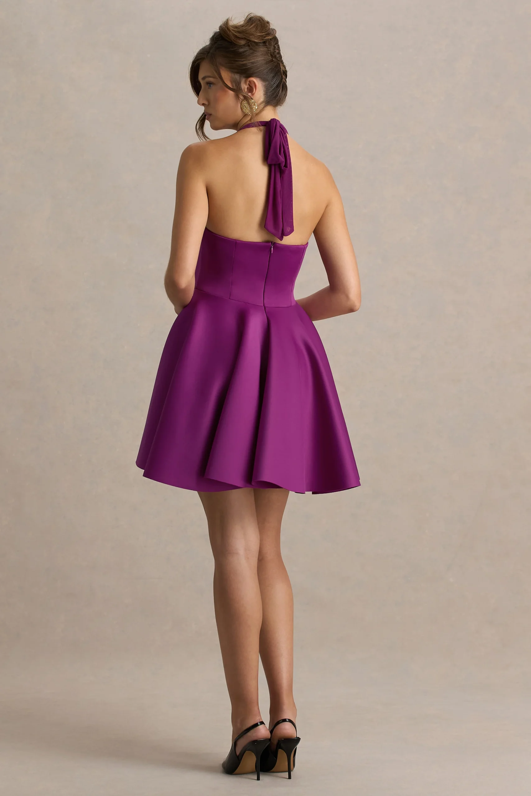 Chic sin esfuerzo y absolutamente lujoso, Peggy es el vestido mini imprescindible para esos momentos de “no tengo nada que ponerme”. Confeccionado en nuestro crepé de buzo premium en tono morera combinado con malla, esta pieza deslumbrante presenta un escote halter con tiras autoajustables y una falda skater con volumen que aporta la máxima feminidad. Combínalo con nuestras sandalias de tacón Sweet Step para un look perfecto.