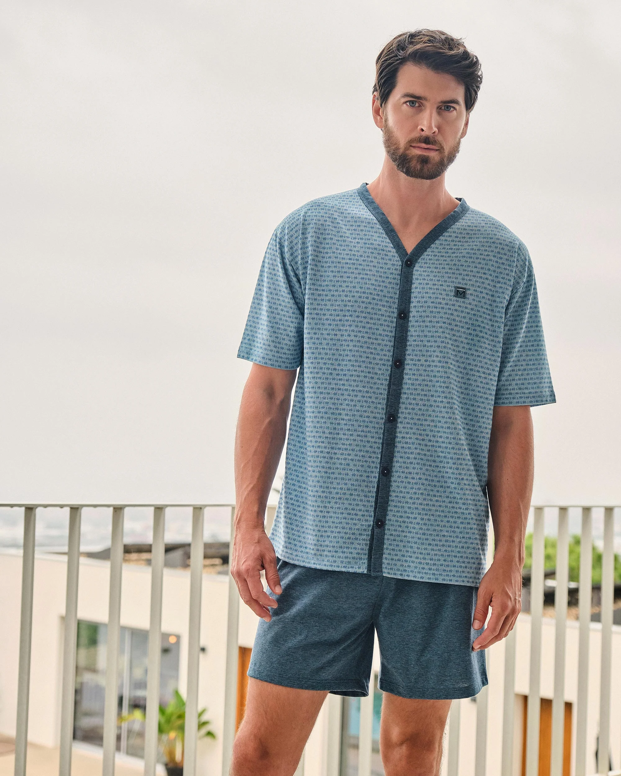 Pijama de manga corta para hombre con apertura de botones.