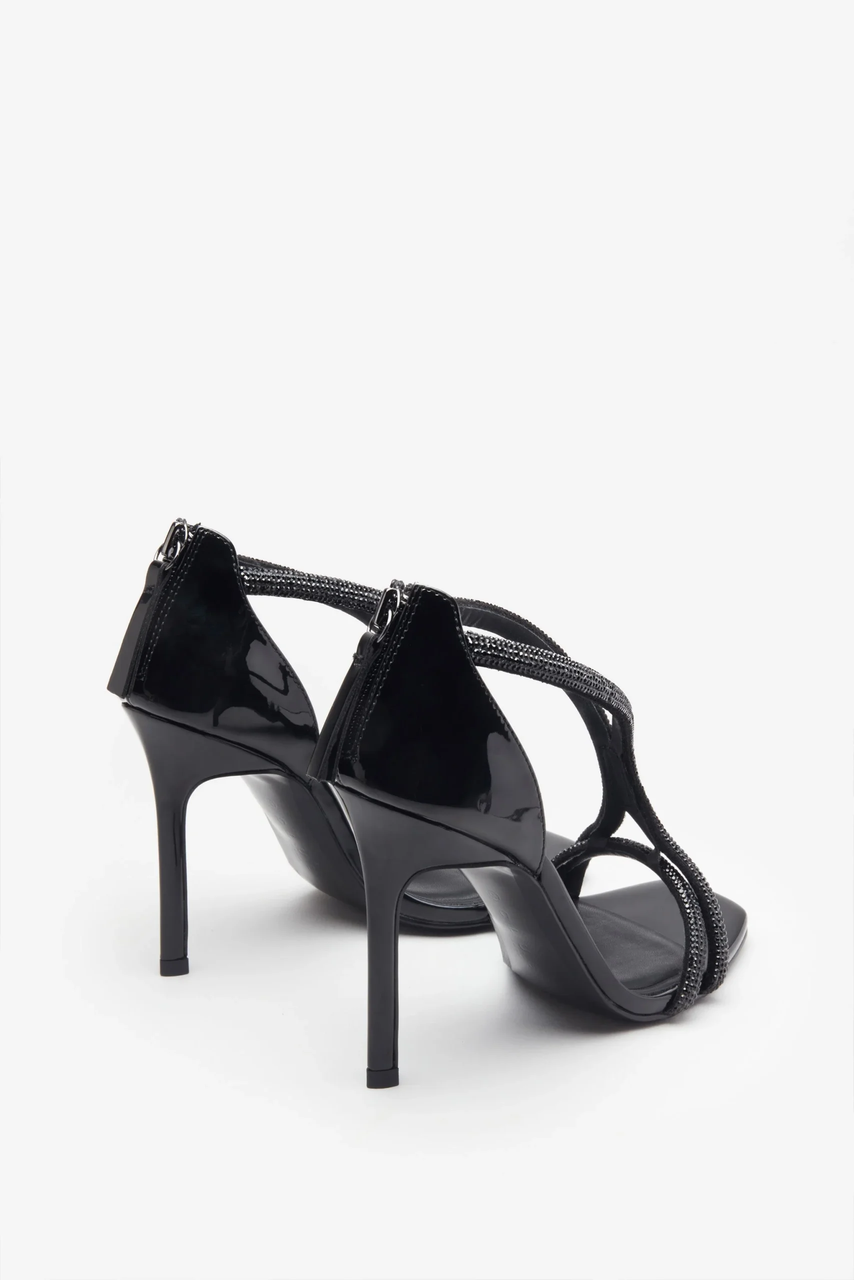 Crea un conjunto ideal para tu próxima reunión con nuestras sandalias Pluto. Diseñadas en un tejido de charol brillante, estos stilettos negros están detallados con tiras cubiertas de brillantes que se sitúan elegantemente sobre tu pie. Con suelas acolchadas y suaves, las Pluto son una opción cómoda para tu próxima noche de fiesta.