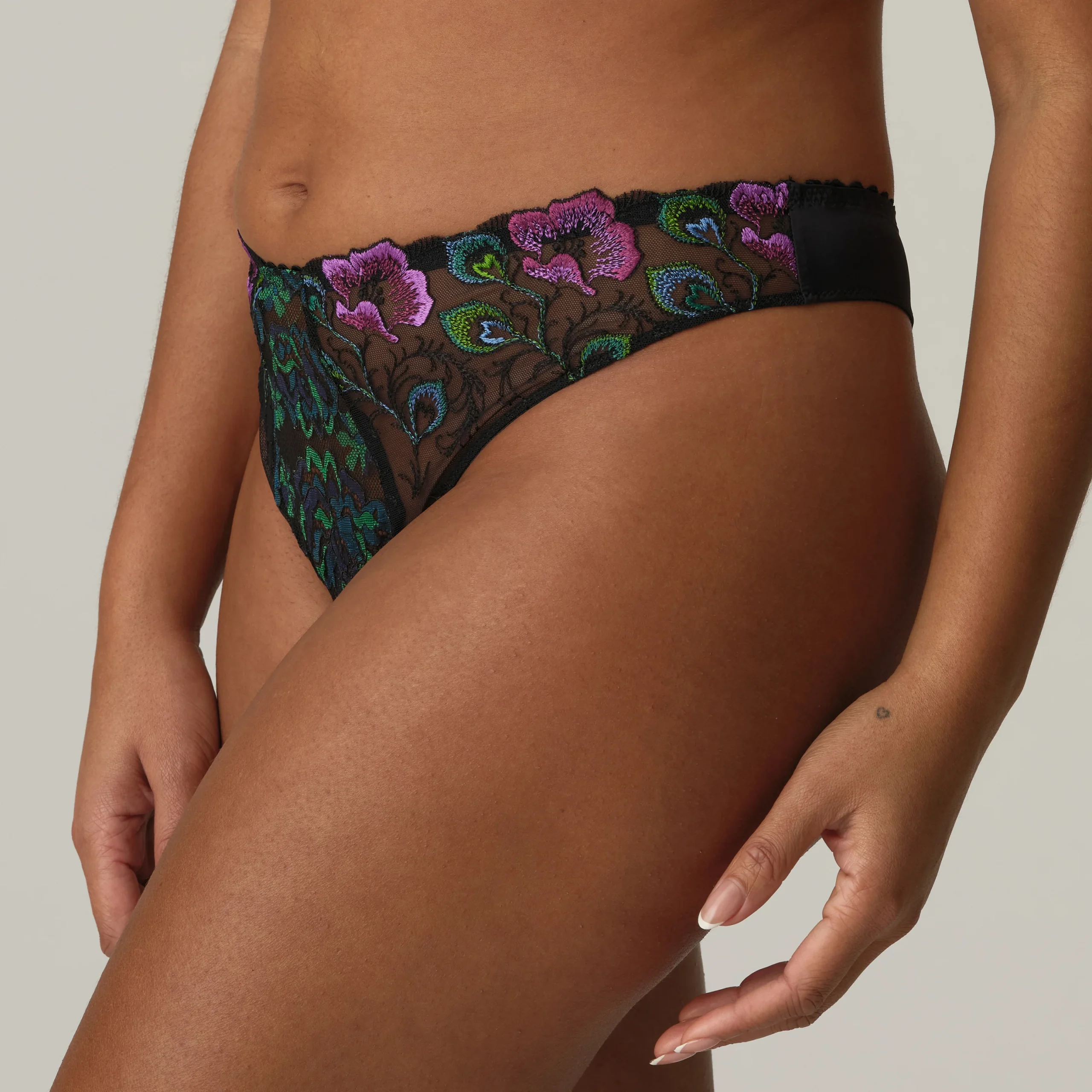 PrimaDonna San Angel combina el encaje femenino con exóticas flores bordadas. Los detalles como las plumas de pavo real y el encaje de pestañas le aportan un look muy sensual. ¡Confort para los pechos más grandes y una silueta seductora! Peacock Feather es una mezcla de colores intensos. El fucsia cálido, los azules intensos y los verdes contrastan maravillosamente bien con la base negra.