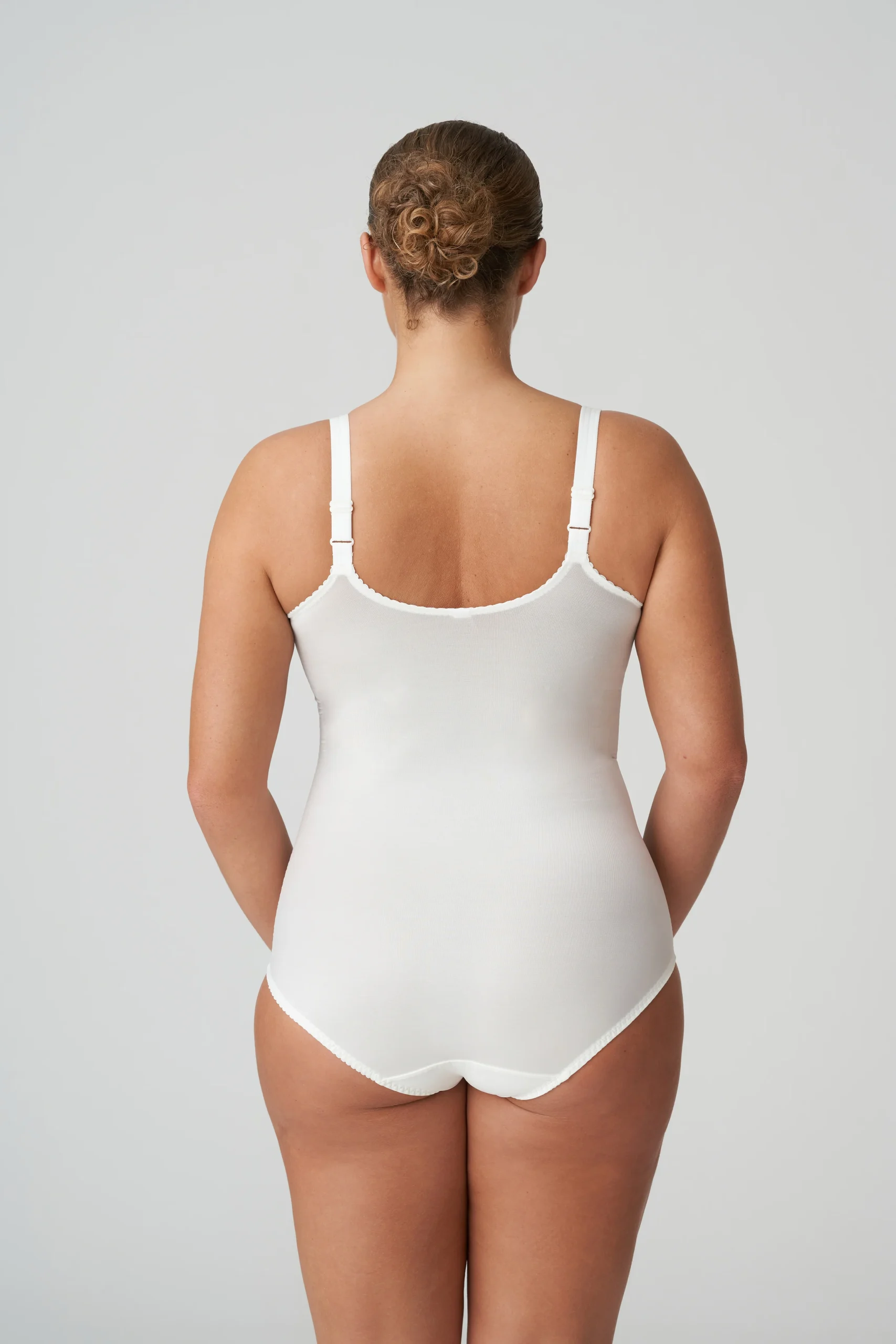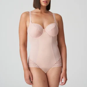 Sobrio y elegante body corrector de figura con aro y copas preformadas, de acabado completamente liso. Este body liso con aros y copas preformadas corrige las nalgas, el talle y el busto. El cuerpo se ha confeccionado con una tela ultra resistente que disimula las imperfecciones del vientre y del talle. El corte de pierna bajo cubre totalmente las nalgas y las corrige. Las copas preformadas rígidas sujetan y elevan el busto, creando la bella forma redondeada típica de Satin.