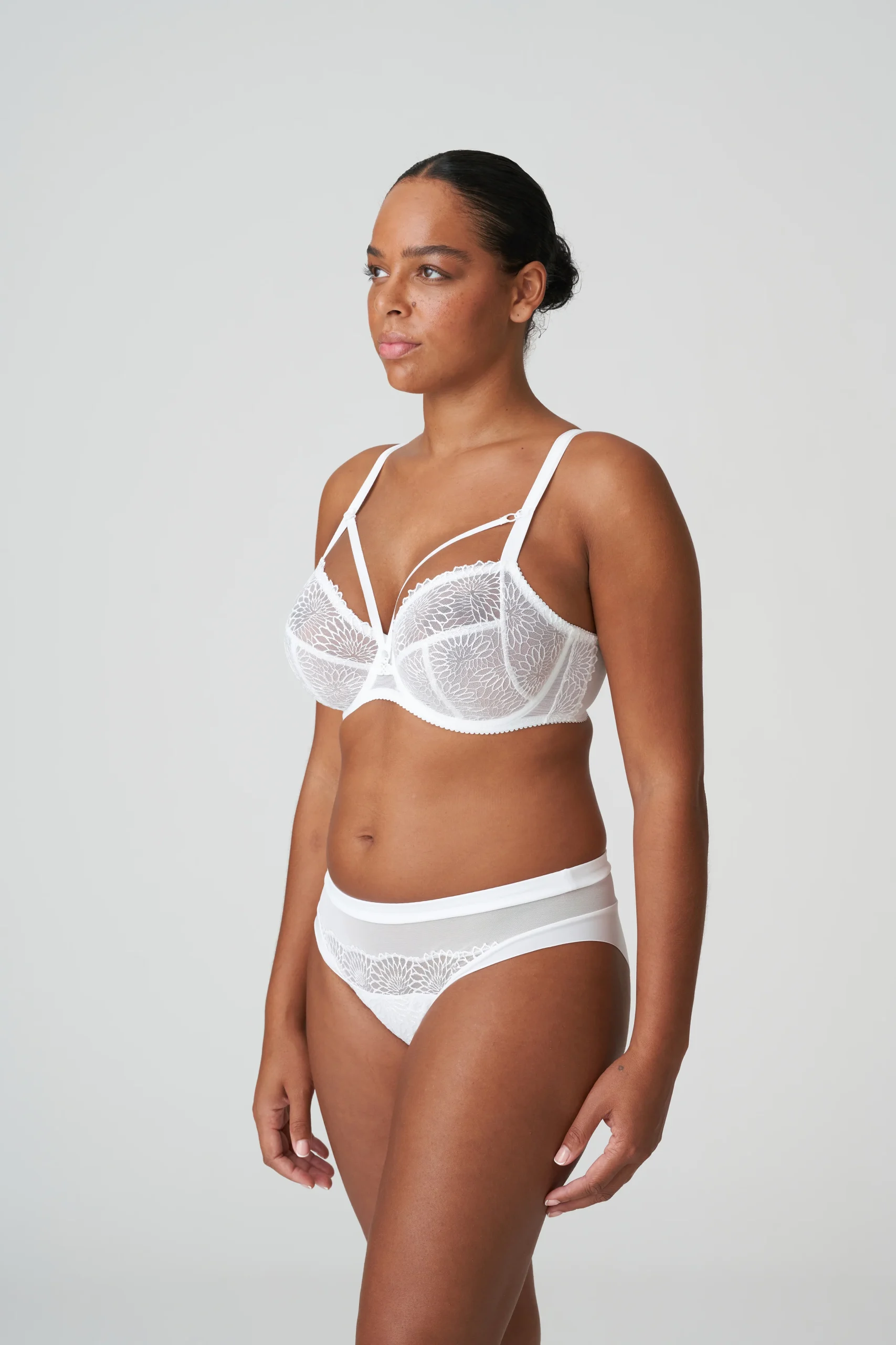 Este sujetador de copa entera con aros es sinónimo de seducción, comodidad y un look muy sofisticado. Las tiras decorativas extraíbles acentúan el escote femenino. ¡Perfecto para un top con cuello en pico!