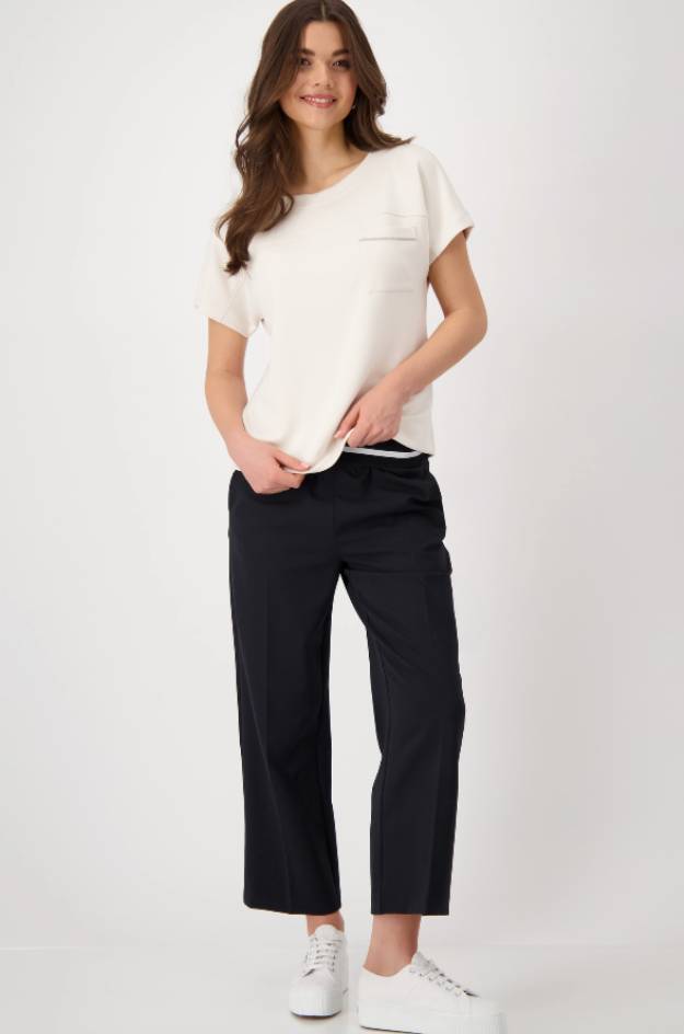 Confeccionada en una mezcla de 55% poliéster, 38% viscosa y 7% elastano, ofrece una textura suave y elástica que se adapta al movimiento diario. Su corte regular fit y cuello redondo proporcionan una silueta favorecedora y cómoda. La prenda incorpora bolsillos laterales con cremallera. Confeccionada con materiales sostenibles.