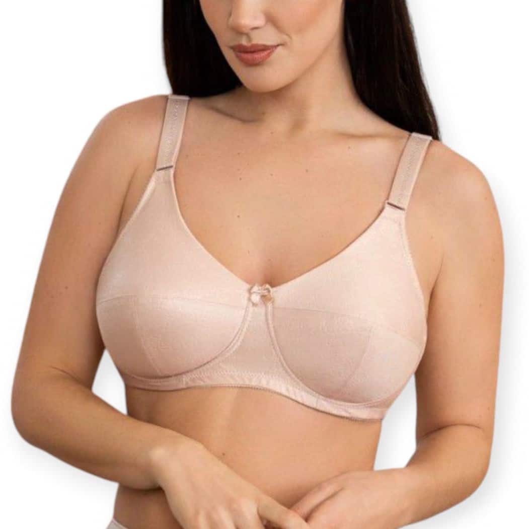 Confeccionado en una delicada microfibra de alta calidad, presenta un elegante tejido con flores gofradas en las copas, aportando un toque clásico y femenino. Incorpora varillas laterales para reforzar la sujeción sin comprometer el confort, y un lazo decorativo en el centro que embellece aún más su diseño.
