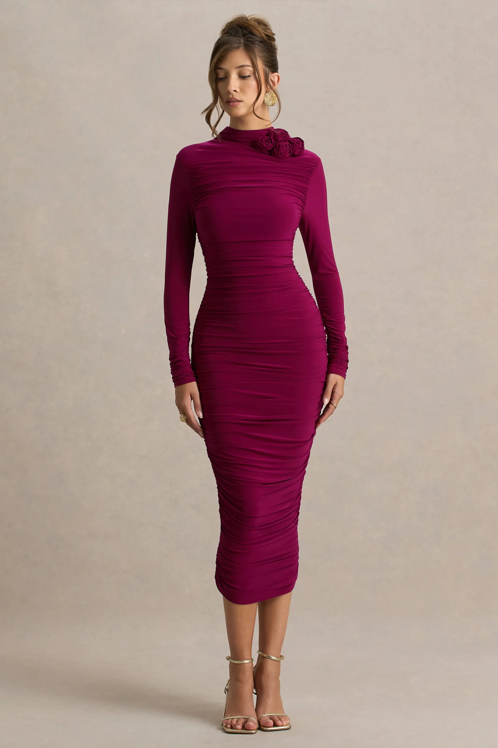 Audaz sin disculpas y elegantemente sofisticado, Tamara es la máxima expresión del glamour nocturno. Confeccionado en nuestro exclusivo jersey premium en un rico y romántico tono burdeos, este vestido midi de corte ceñido está diseñado para esculpir, realzar y cautivar. Con un escote alto y un detalle estructurado tipo corsage, Tamara irradia feminidad moderna con un toque dramático. El fruncido estratégicamente colocado resalta cada curva. Para esos momentos que exigen un impacto innegable, Tamara será tu mejor elección.
