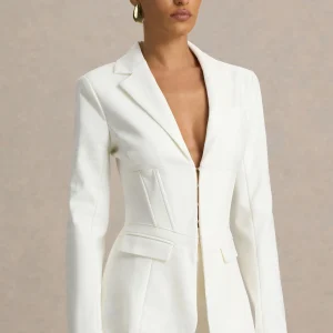 Incorpora un estilo chic sin esfuerzo esta temporada de fiestas con Urban. Diseñado en un tono blanco nítido de nuestro crepé premium, este blazer cuadrado cuenta con sutiles almohadillas en los hombros, solapas de pico y un cierre de botón cubierto. Para un atuendo de cóctel elevado, combínalo con unos zapatos de tacón como Blade.