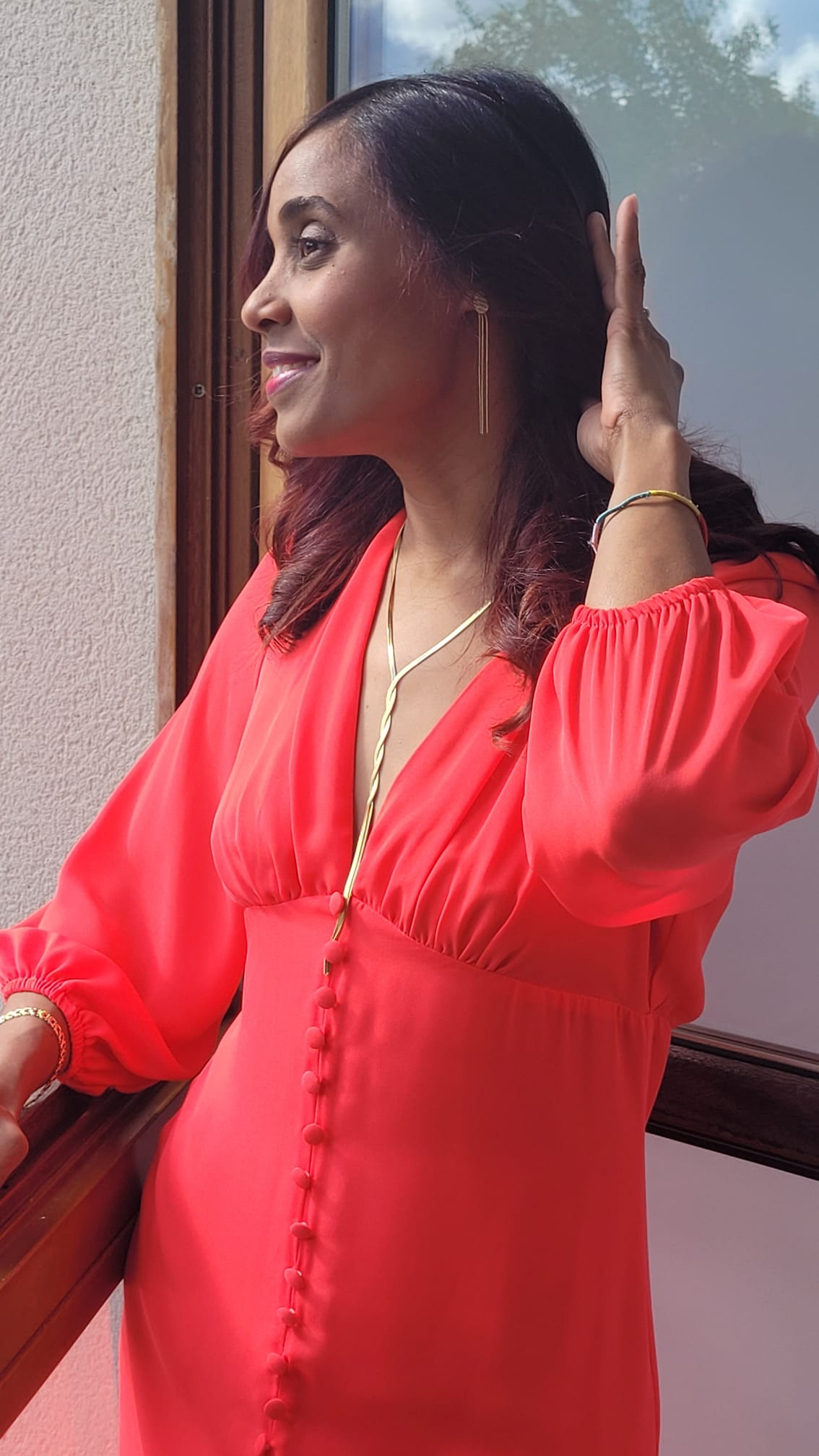 Descubre la elegancia radiante de nuestro vestido largo de fiesta de Casting en gasa color coral. Con un corte debajo del pecho que realza tu figura, presenta un escote pico amplio y manga larga acabada en goma para un toque de comodidad y estilo.