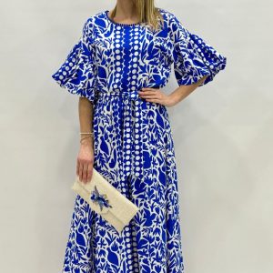 Zephy | Vestido Midi Camisero Floral con tonos crema y azulados con detalle de Cinturón